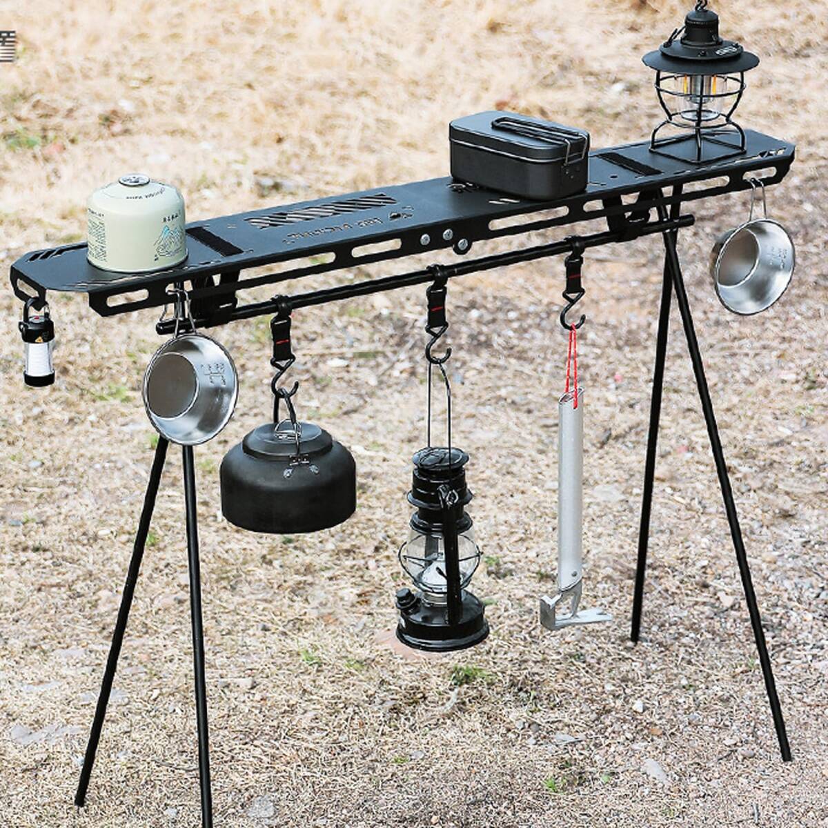 ハンギングラックに取り付けるだけでテーブルに- 食器やランタン、雑貨などを気軽に吊り下げる事ができる便利なハンガーラックをさらに便利に拡張できるテーブルプレート。