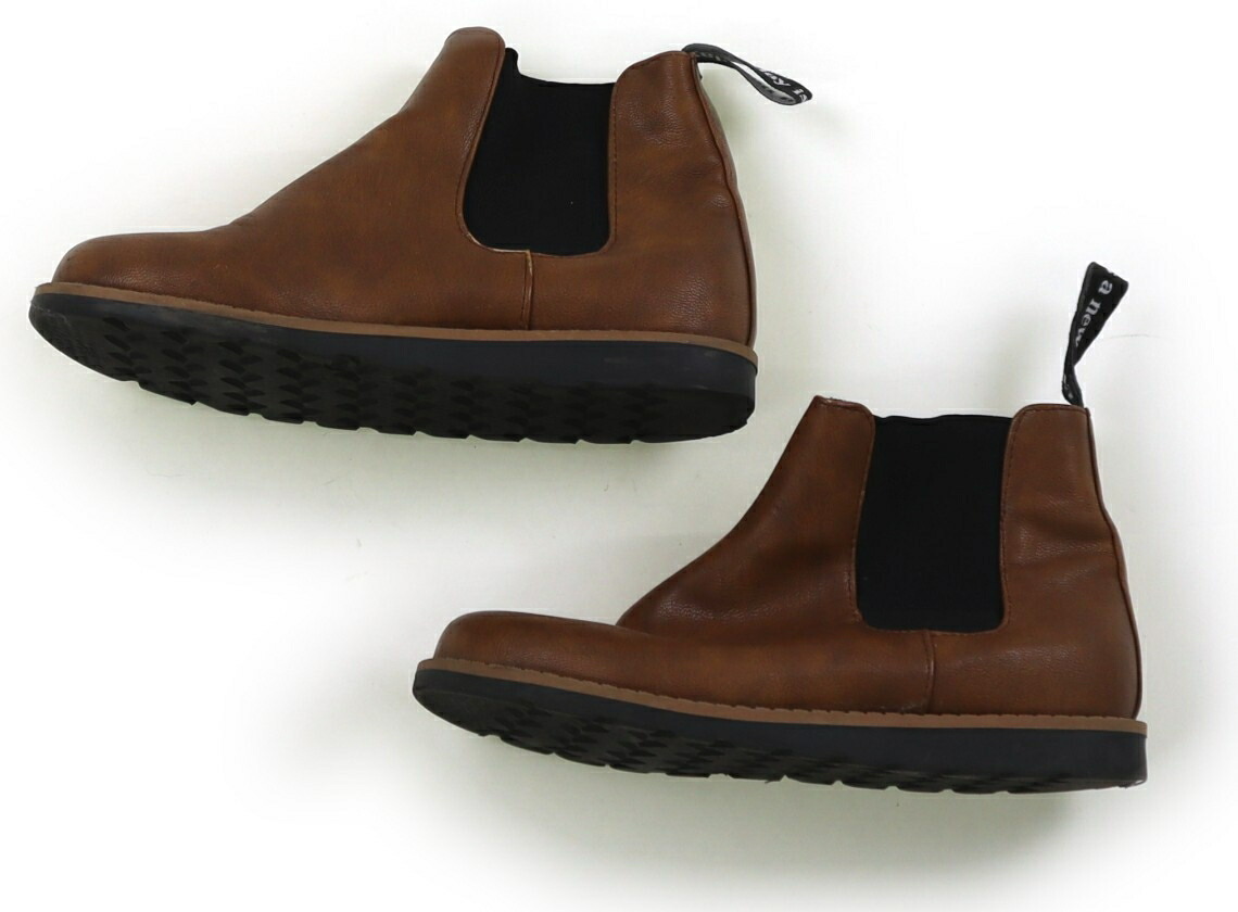 21cmサイズ。裏面が暖かい生地です。全体に擦れによる汚れが複数あります。右足の側面に白っぽい擦り傷があります。やや型崩れあり。使用感はありますが、まだまだお使いいただけます。
