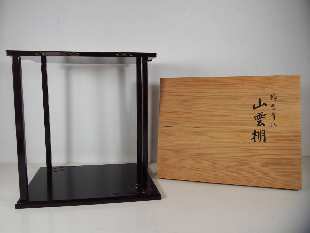 平安 鈴木光入 鵬雲斎好 溜塗 山雲棚 組立式 木製 共箱 茶道具 G-187