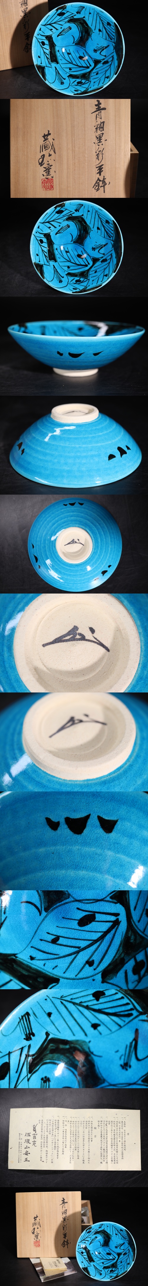 | 蔵珍窯 美濃焼 青釉 黒彩 鉢 共箱付 / 茶器 皿 煎茶道具 煎茶飾 .G2258 |