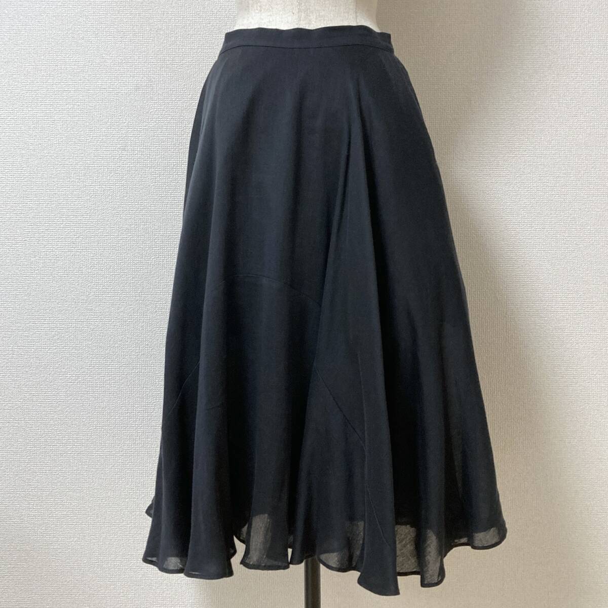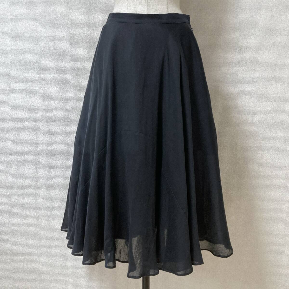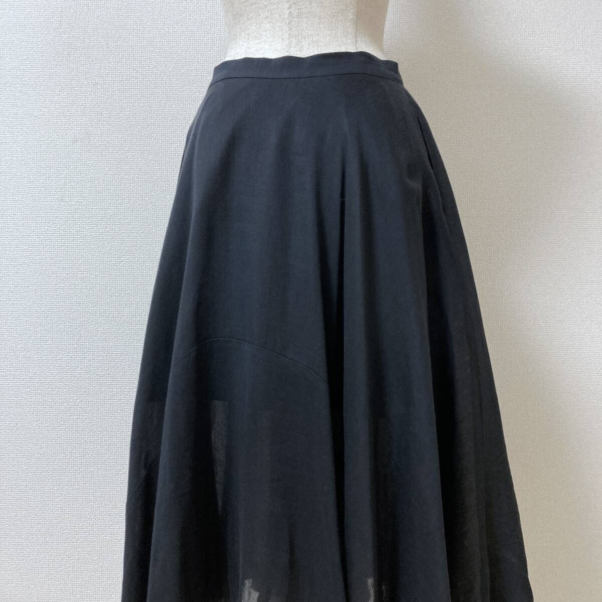 Yohji Yamamoto Femme コットン シルク混 レイヤード シアー 切替 フレア ロング スカート ブラック