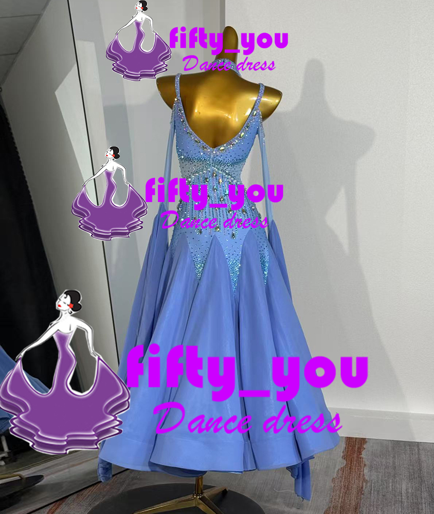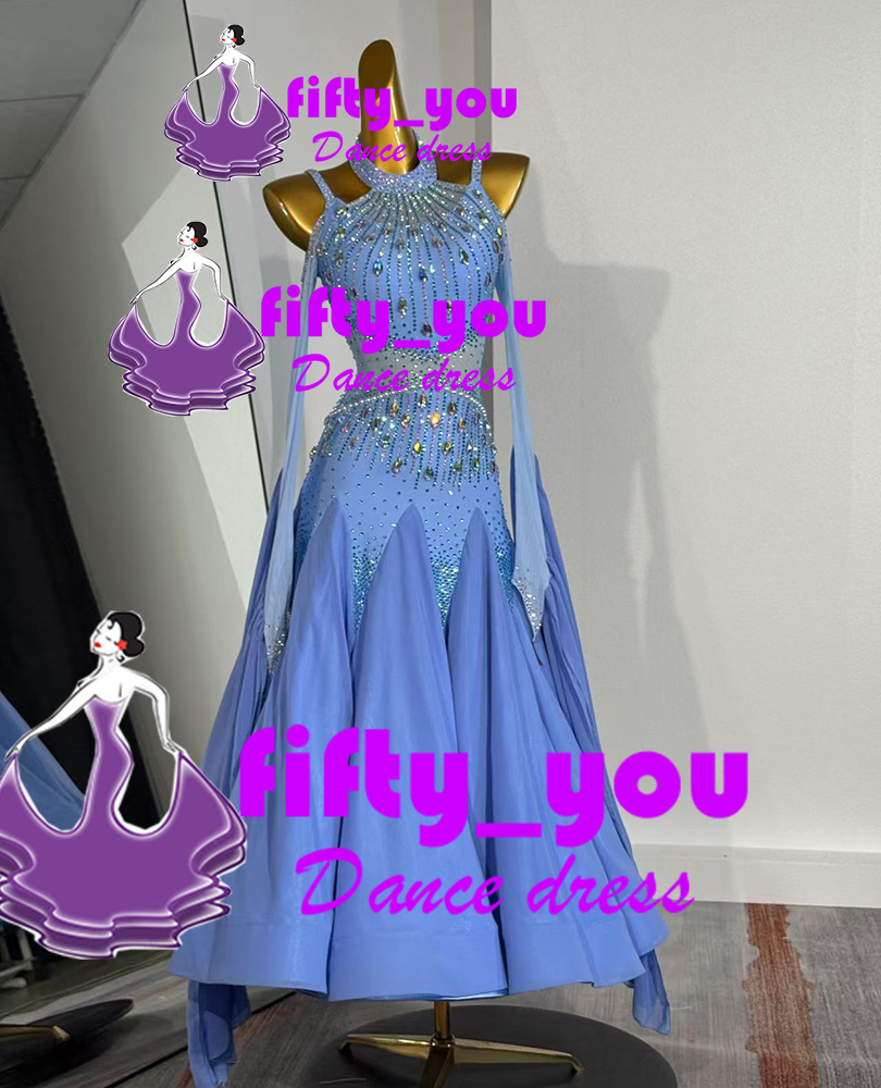 新品fifty_you オリジナル競技ドレス レディース社交ダンス衣装 サイズセミオーダー スタンダードドレス ゴージャス石飾り 青色系