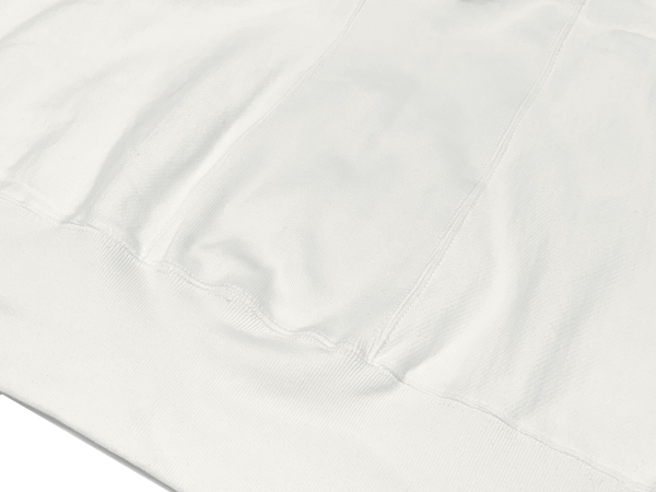 当時のスウェットは縦に縮みやすいという弱点がありました。そこで生み出されたのがこちらの製法。