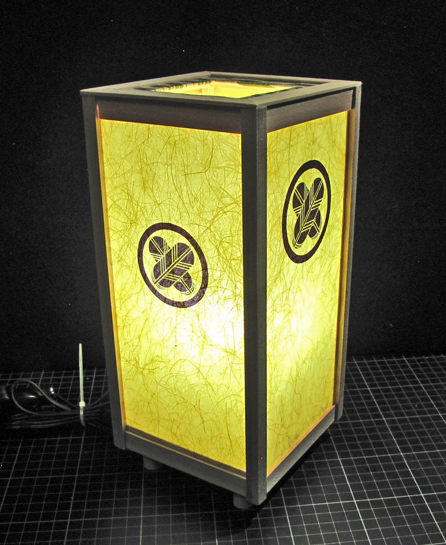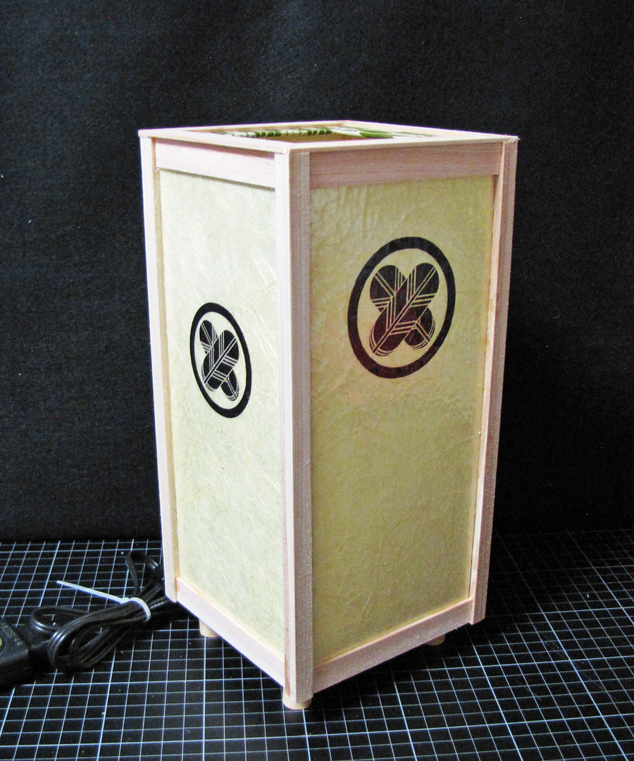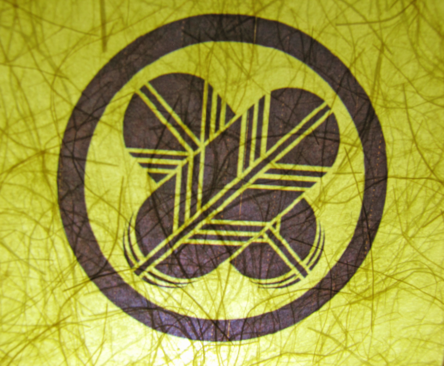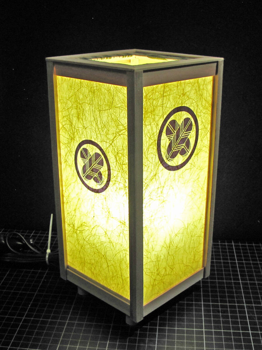 ★漉き和紙の温もりを!!家紋の宿り木=「丸に違い鷹の羽」(家紋変更可)/至福の明り/LED昼白色・桧枠造り・ラミネート加工・軽量/