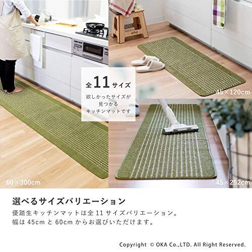 オカ (OKA) 優踏生 洗いやすいキッチンマット ベージュ 約60cm×300cm (洗える 台所マット ロング おしゃれ 日本製 ずれない