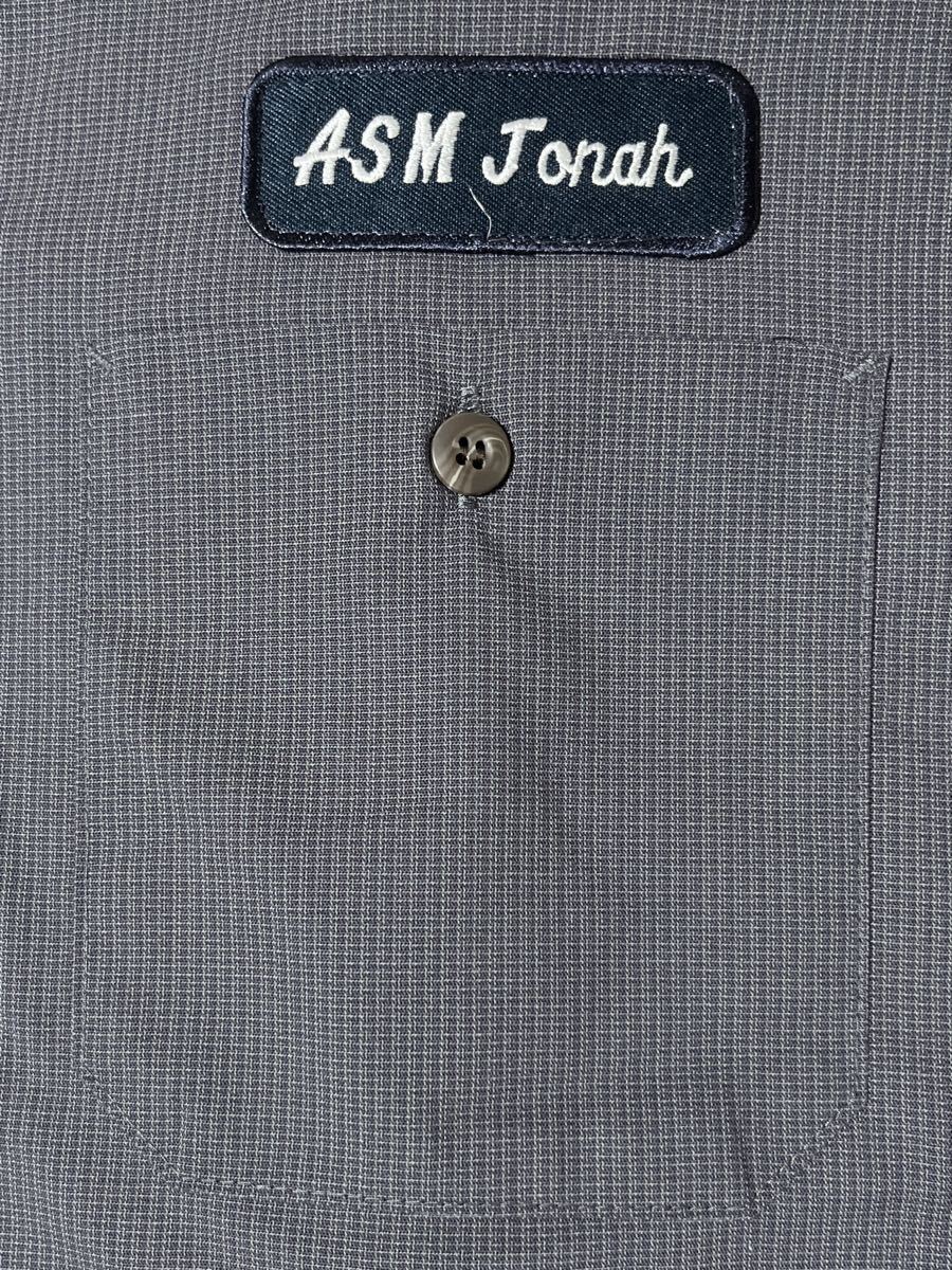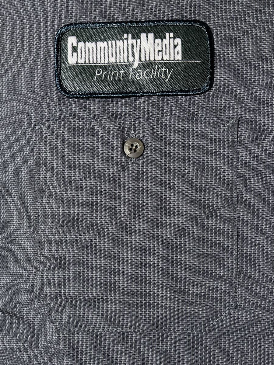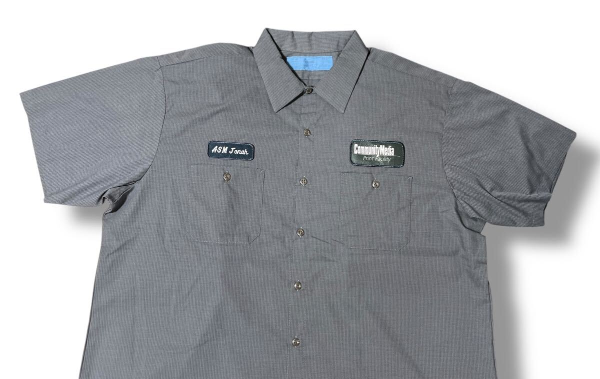 CINTAS 半袖ワークシャツ ワッペン Community mediaPrint Faclity ASM Jonah グレー系 2XL ●洗濯プレス済●ネコポス可● 古着/505