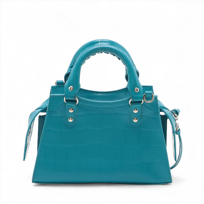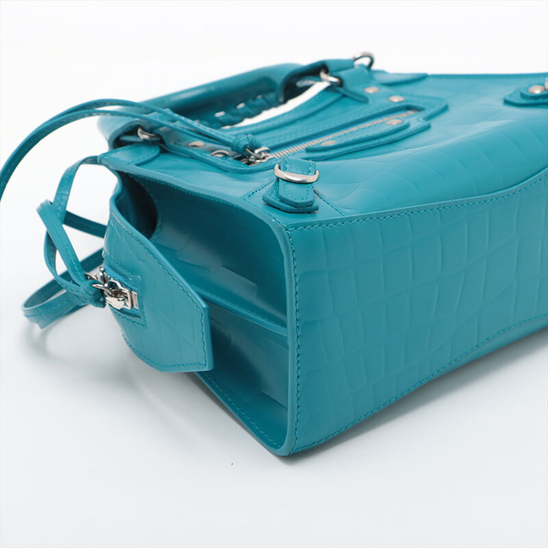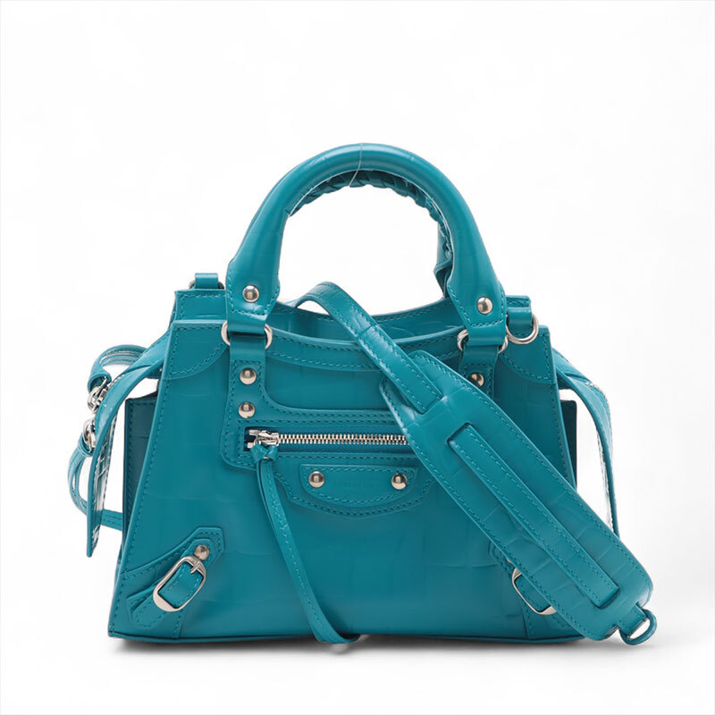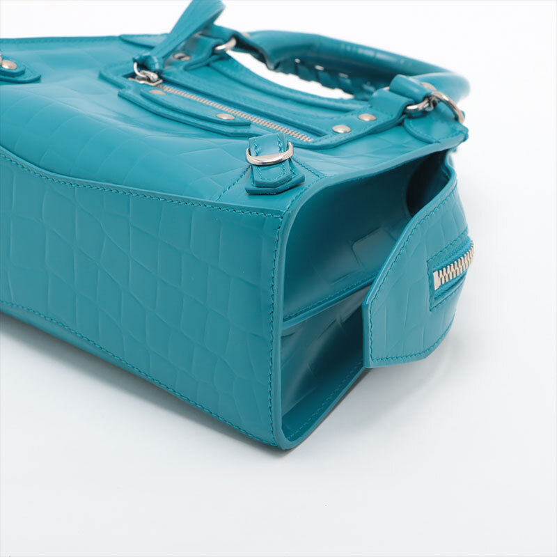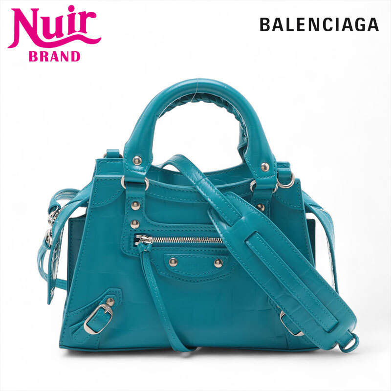 バレンシアガ BALENCIAGA ハンドバッグ ミニ シティー 型押し レザー クラシックネオ ブルー
