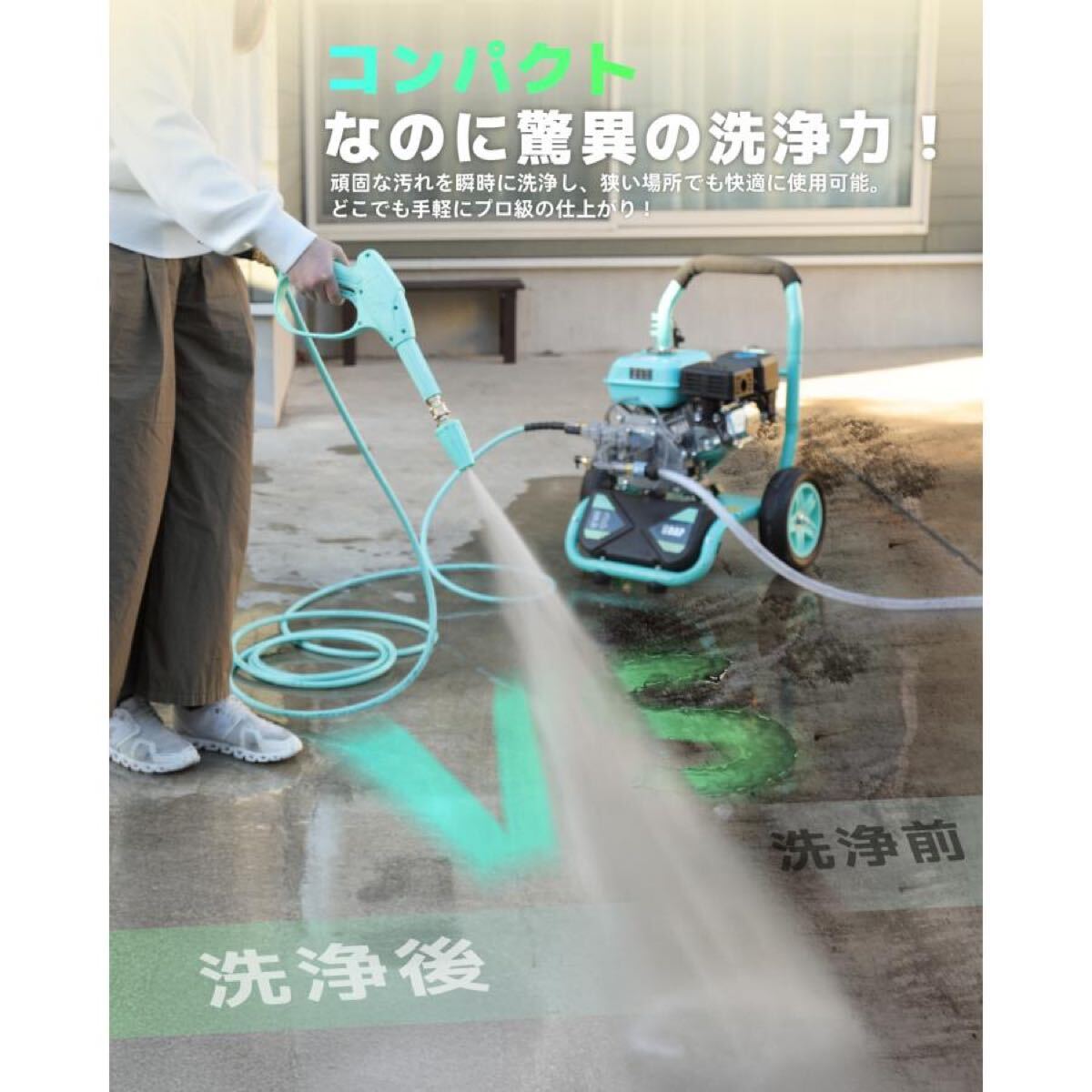 電源が必要な家庭用電動洗浄機とは異なり、エンジン式なので電源がない屋外作業現場や広大な農地、キャンプ場などでも安心して使用できます。自宅の洗車や庭の清掃、外壁のメンテナンスから、プロフェッショナルな業務用清掃まで、さまざまなシーンで活躍します。災害時の汚泥除去や緊急清掃にも迅速に対応できる点も大きな魅力です。
