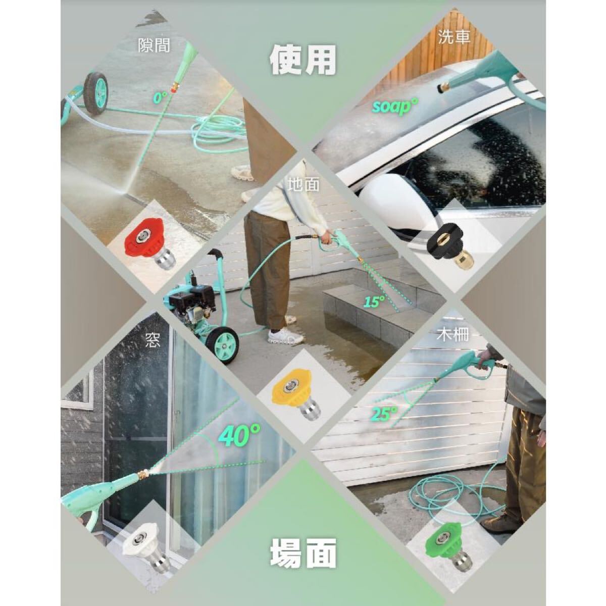 ノズルチップ:0℃〜40℃/5種類0度直射・15度拡散・25度拡散・40度拡散・洗剤用