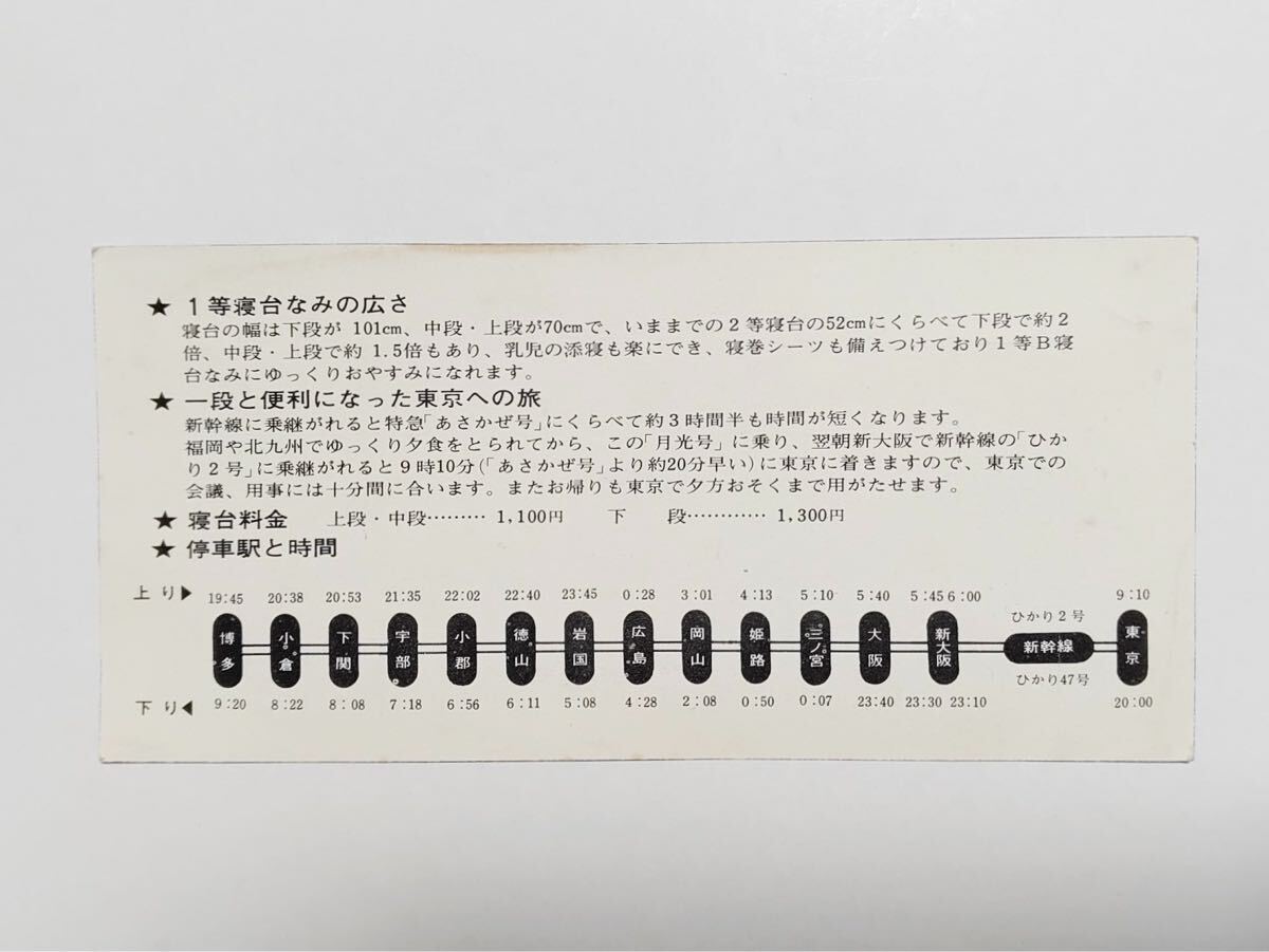 【記念切符】世界で最初の寝台電車 特急 月光号 運転開始記念券 博多←→新大阪 日本国有鉄道 S42 @e