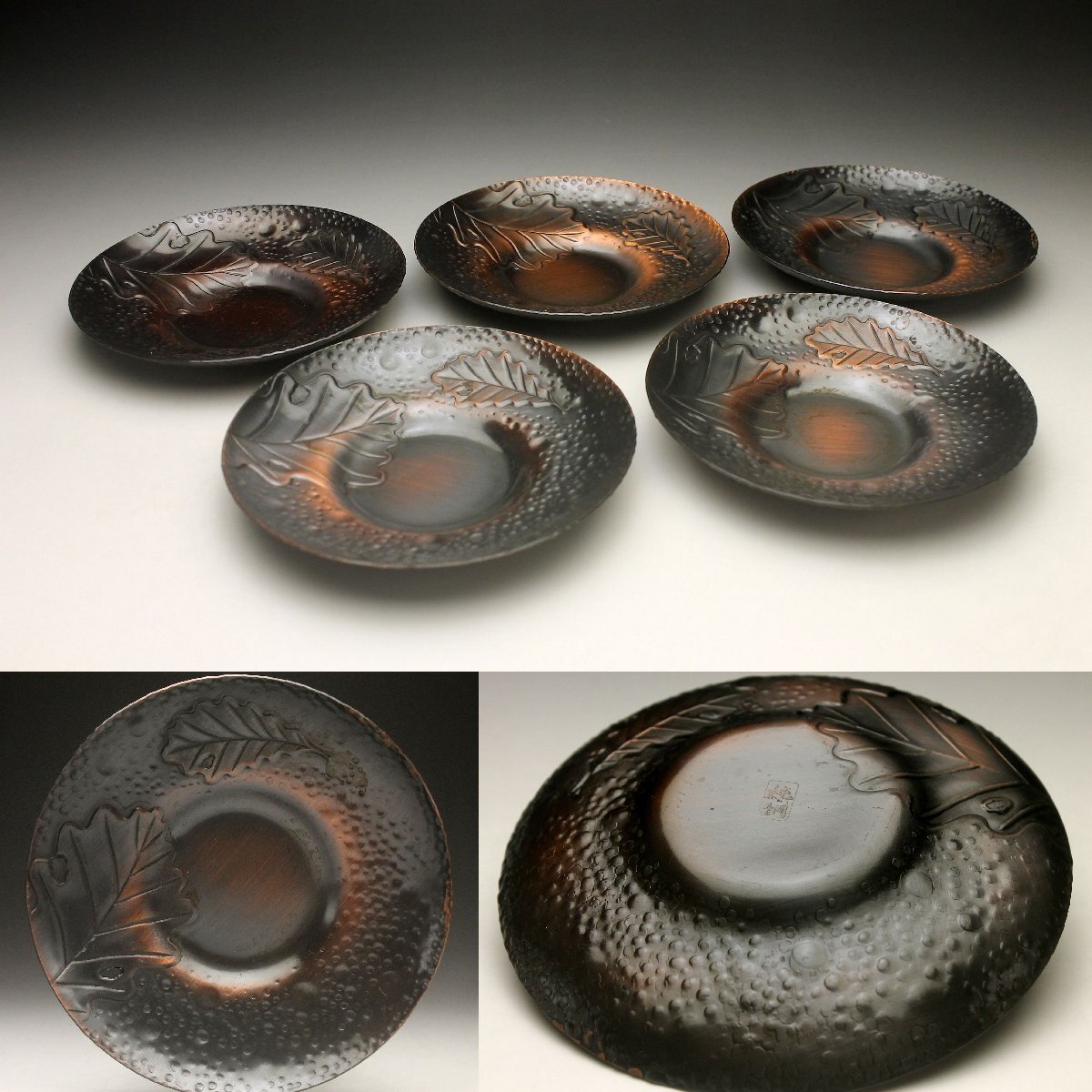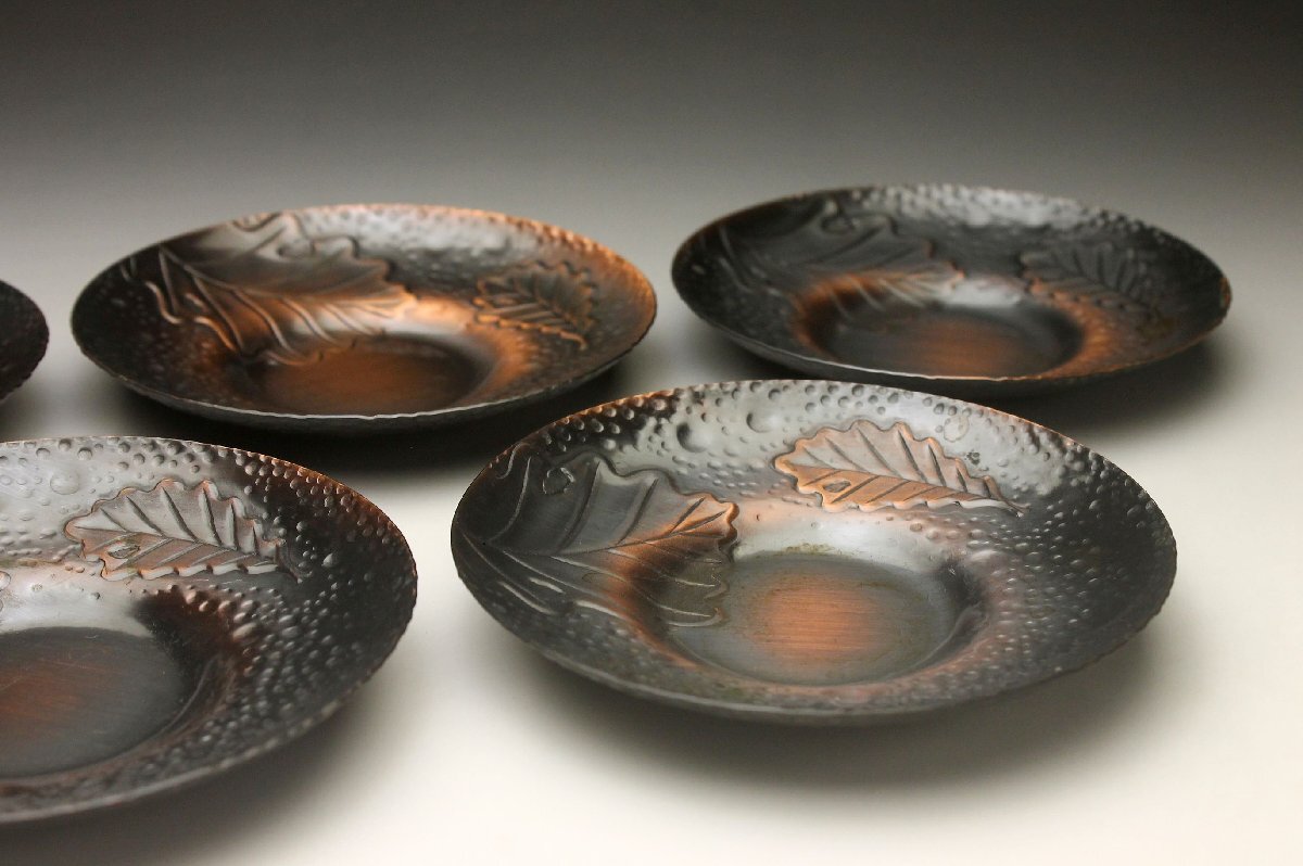 【余韻】 純銅 木の葉文 茶托揃(5客)★煎茶道具<同梱可>