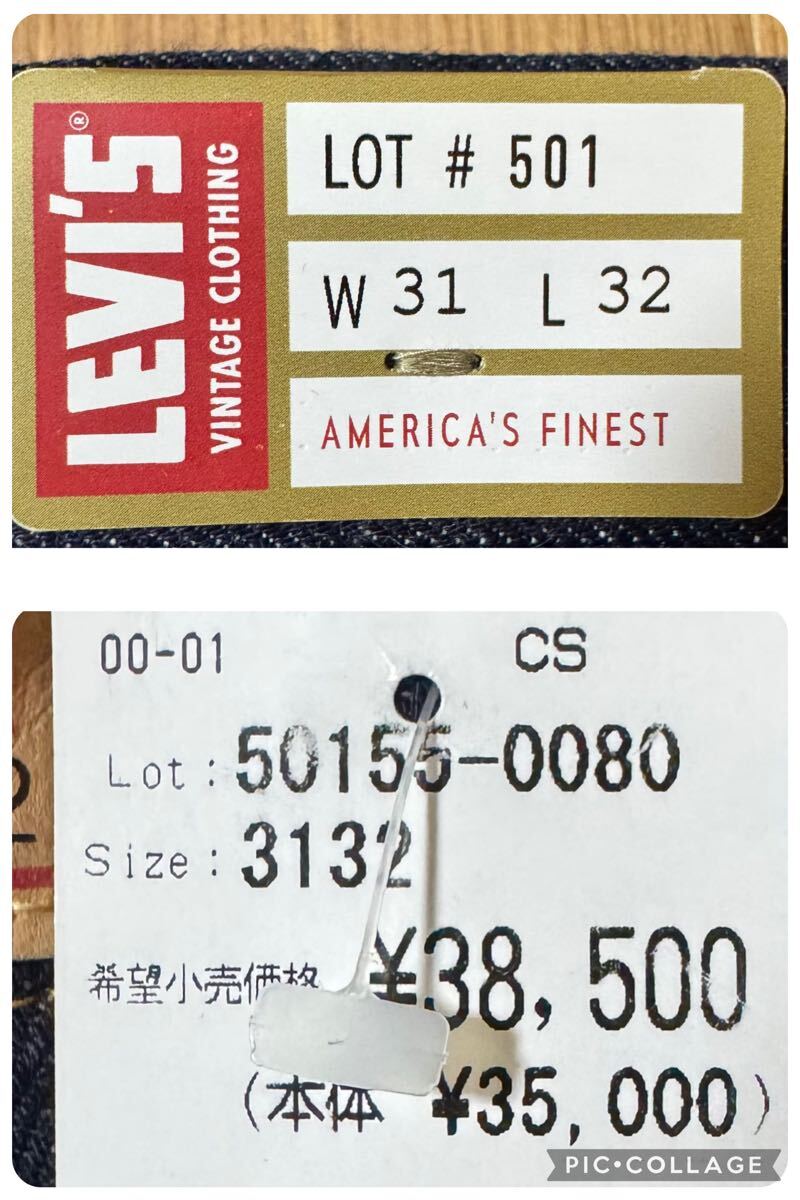 未使用品 LEVI'S VINTAGE CLOTHING LVC 501xx 1955年モデル ビッグE 31×32 日本製 赤耳 50155-0080