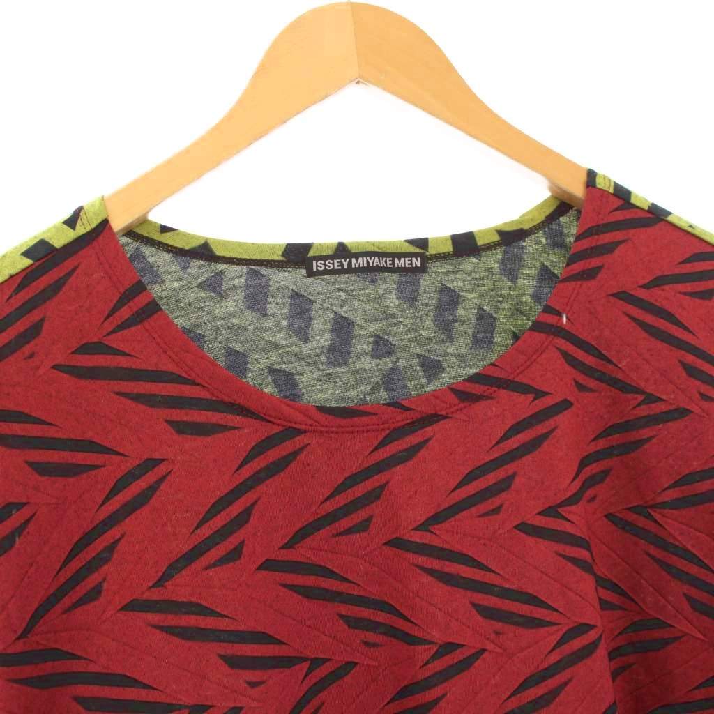 イッセイミヤケメン ISSEY MIYAKE MEN 配色切り替えTシャツ カットソー 半袖 プリーツプリント 3 赤 緑 ME61JK159 /KH メンズ