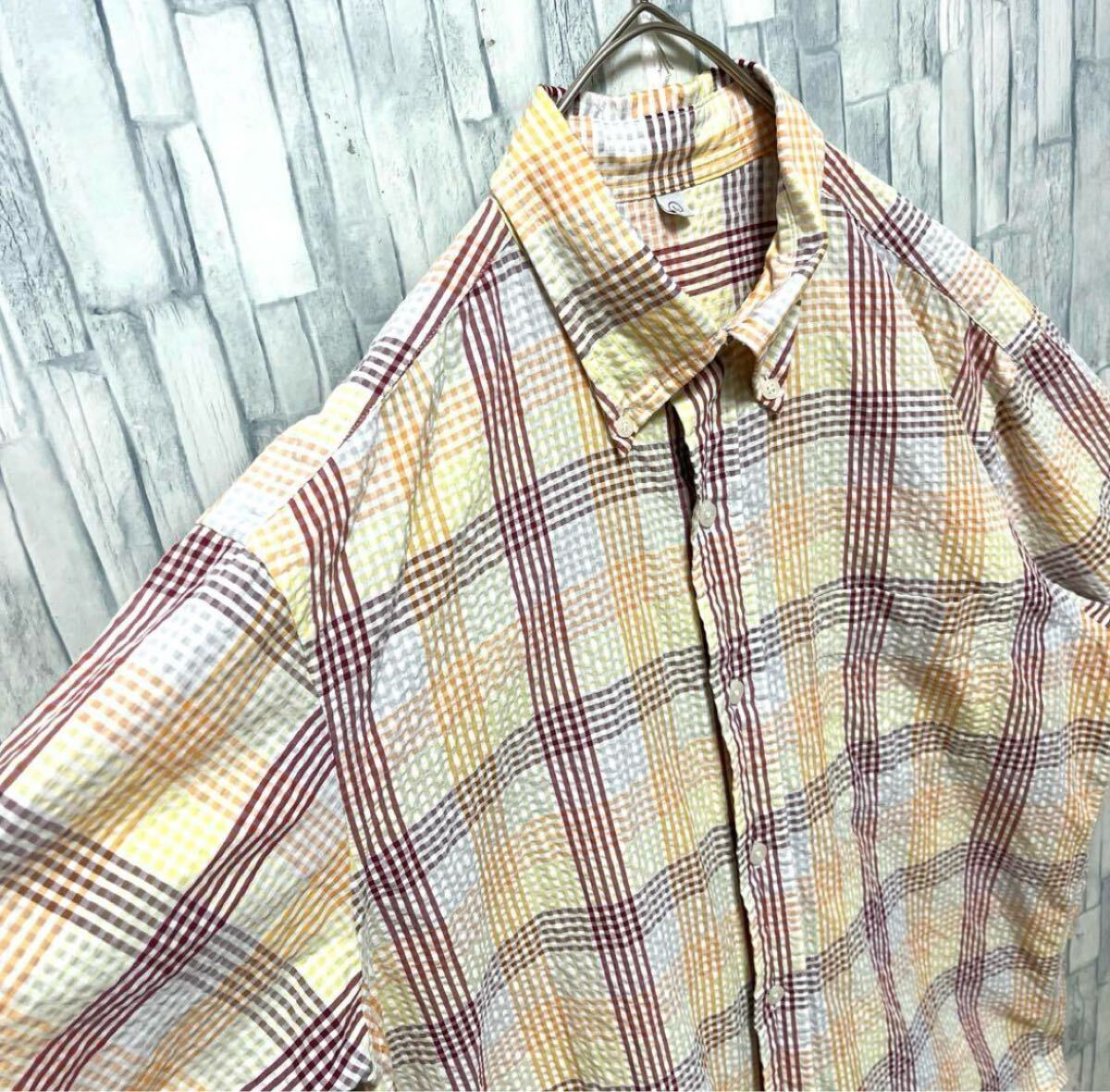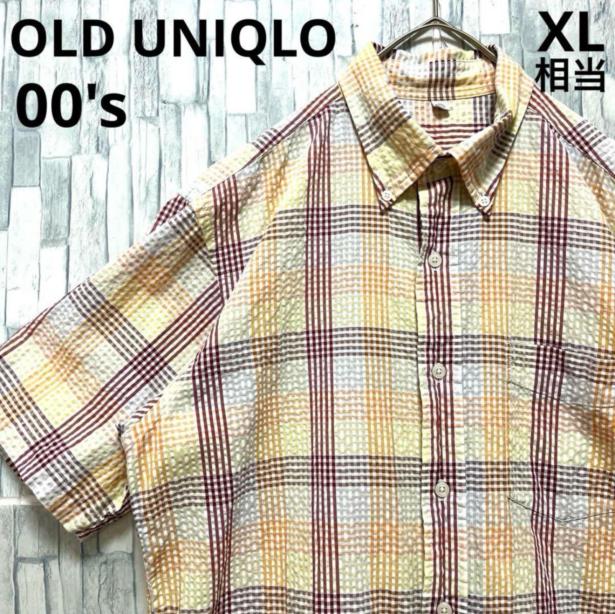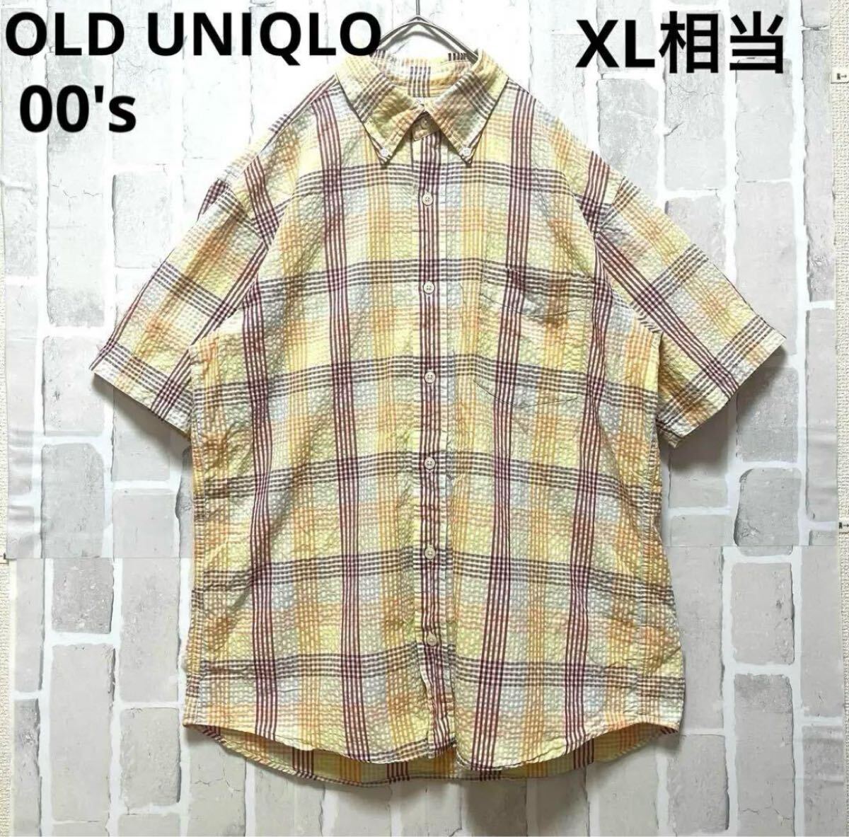 OLD UNIQLO オールド ユニクロ c-boy cityboy シティボーイ シティーボーイ シアサッカー チェックシャツ BDシャツ ボタンダウン 半袖 サイズL アーカイブ 00s 2000年代 送料無料の出品です。