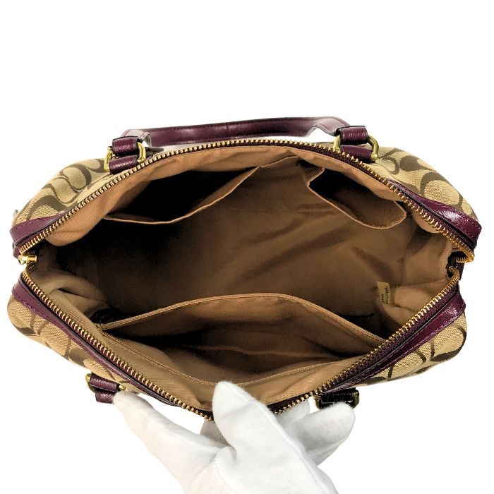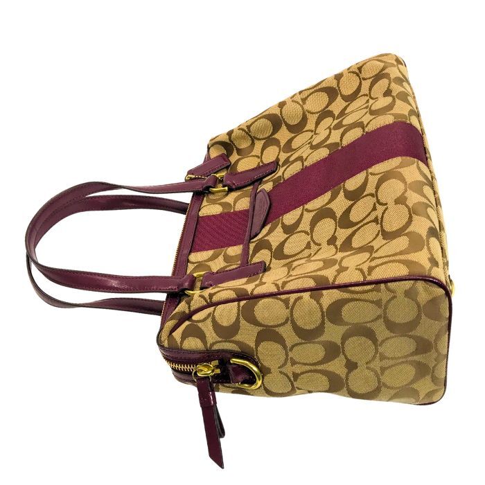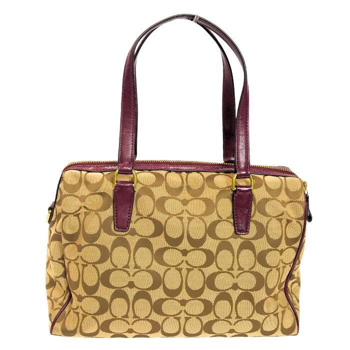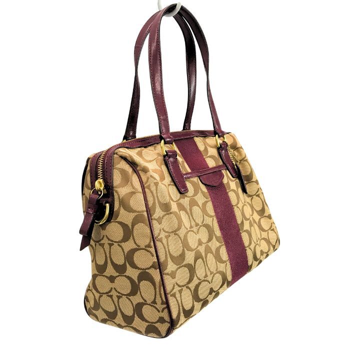 | ■ブランド名 COACH コーチ ■カテゴリ <中古品>ハンドバッグ ■対象 レディース ■素材 キャンバス ■カラー ブラウンベージュ×ボルドー ■サイズ 縦20×横30(上部)×マチ14(最大部)cm ■付属品 無し ▼商品説明 ほとんど使用感の無い美品です。 ※当商品は中古品です。画像で商品状態の全てを表現することが困難なため、「ランク」「価格」もご参考にご検討をお願いします。 ※メガネ、サングラスのフレームバランスについて、画像では不均等であっても特に説明文に記載の無い場合は、発送前の検品時に均等に調整しますのでご安心ください。 ※商品入荷時の状態によっては、弊社の判断でクリーニング、リペアを施している場合がございますので予めご了承ください。 ※箱やケース、カードなどの付属品がある場合、それらの状態は、ランク評価には含んでおりませんので予めご了承ください。 | |