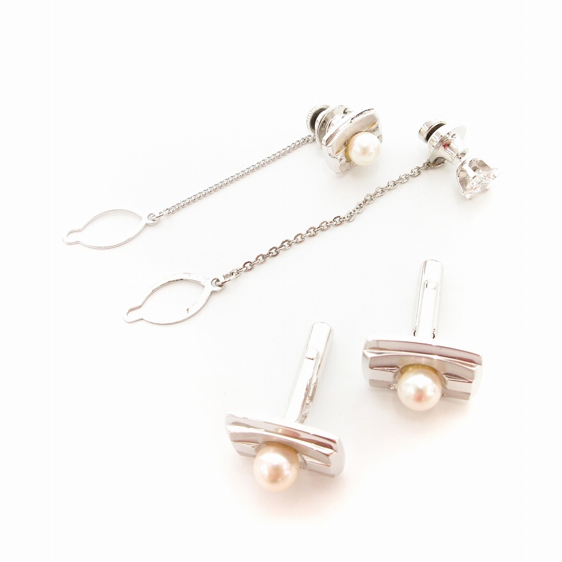 ユミカツラ YUMI KATSURA カフス タイタック セット パール 銀色 /UO ■GY99 メンズ