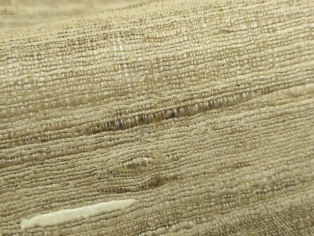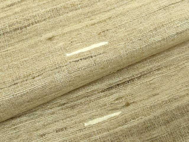 | 【正絹・未使用・未仕立て】 状態は一度も締めておらず 特に目立ったシミ汚れなどもなく大変良い状態です。 ヤママユガ科の野蚕の一種から手作業で紡がれます。 野生の蚕は、食べる葉の種類が違うだけで、様々な色や硬さの繭を作り出します。 ムガ繭はSomやKatmar treeの葉を食べて育つ蚕によって生み出されています。 食べる葉の種類でこのように金色の糸で繭を作るのですが、 自然の中でとれる繭自体も少ない上に糸はわずかしか取れません。 細い糸で手織りされ、品の良い光沢のある極上の布となります。 リズミカルな節感ものびのびとして楽しく、爽やかな表情を与えています。 ふんわりと柔らかく、艶やかな絹糸にじっと見入る美しさです。 紡がれた糸が自然のままで、金色に輝くことからゴールデンシルクとも呼ばれます。 ムガシルクのざっくりとした素朴な風合いと、 規則正しい文様がコントラストを演出し、とても個性的な作品となっています。お安く出品致しますので、是非この機会にいかがでしょうか?