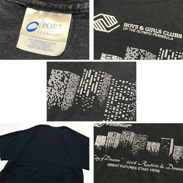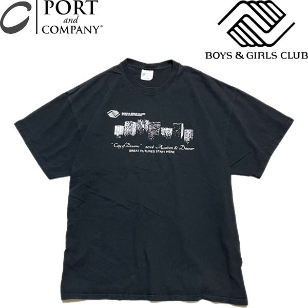 1点物◆Boys & Girls Clubs黒プリントTシャツ古着メンズXXLレディースOKアメカジ90sストリート/スポーツ中古ブランドPort & Co夜景349569