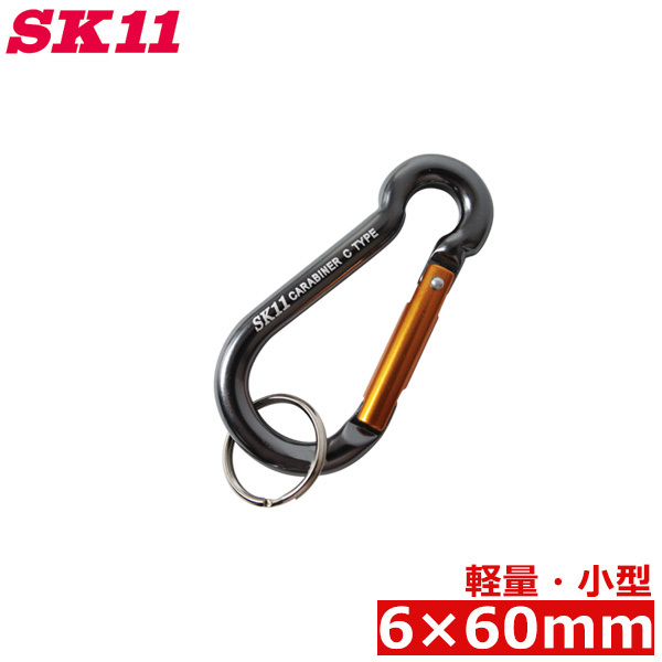 SK11 アルミ製 軽量 カラビナ SAC-660C ブラック 黒 ツールフック おしゃれ 腰袋 吊り下げ キーホルダー