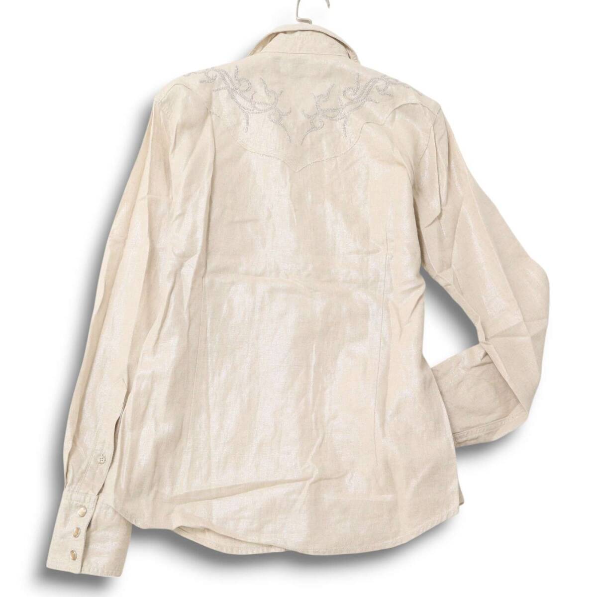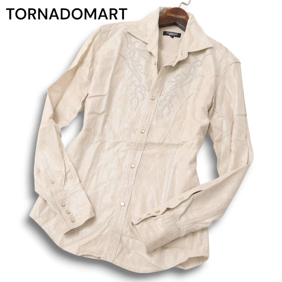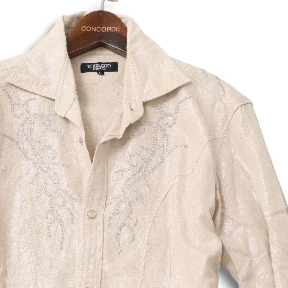 【美品】TORNADOMART トルネードマート 春夏 麻 リネン混★ ラメ 刺繍 光沢 長袖 ウエスタン シャツ Sz.L メンズ