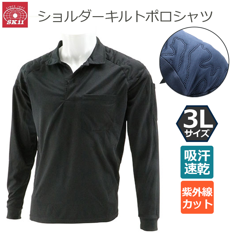 SK11 ショルダーキルトポロシャツ 長袖 ブラック 3L 黒 肩 保護 作業着 620114-BLK-3L