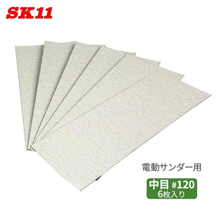 SK11 サンダー用 ペーパー #120 中目 6枚入 93×230mm 表面研磨 電動サンダー 研磨