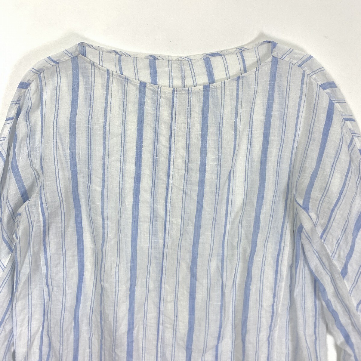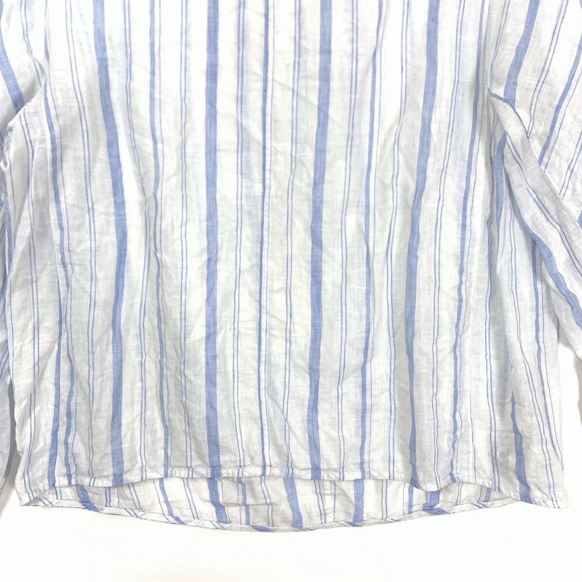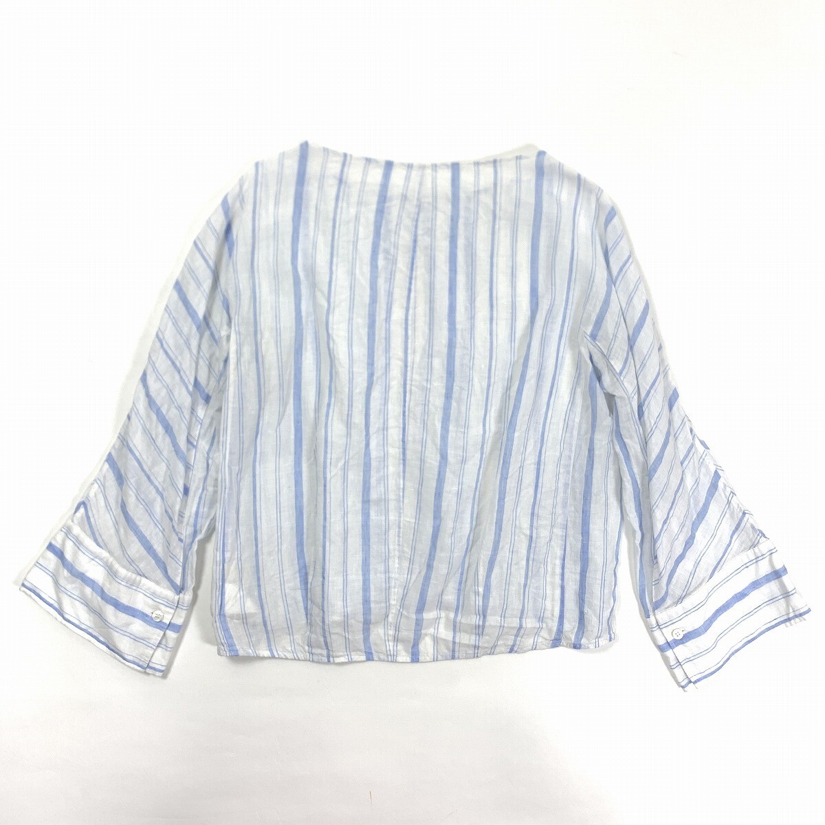 MACPHEE マカフィー リネン 麻100% 長袖ストライプ ブラウス ブルー ホワイト 36 YC963