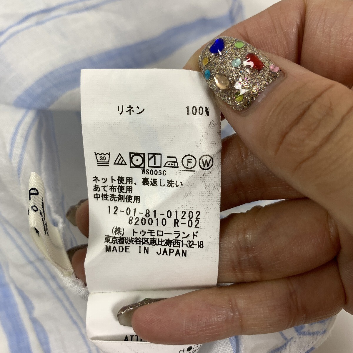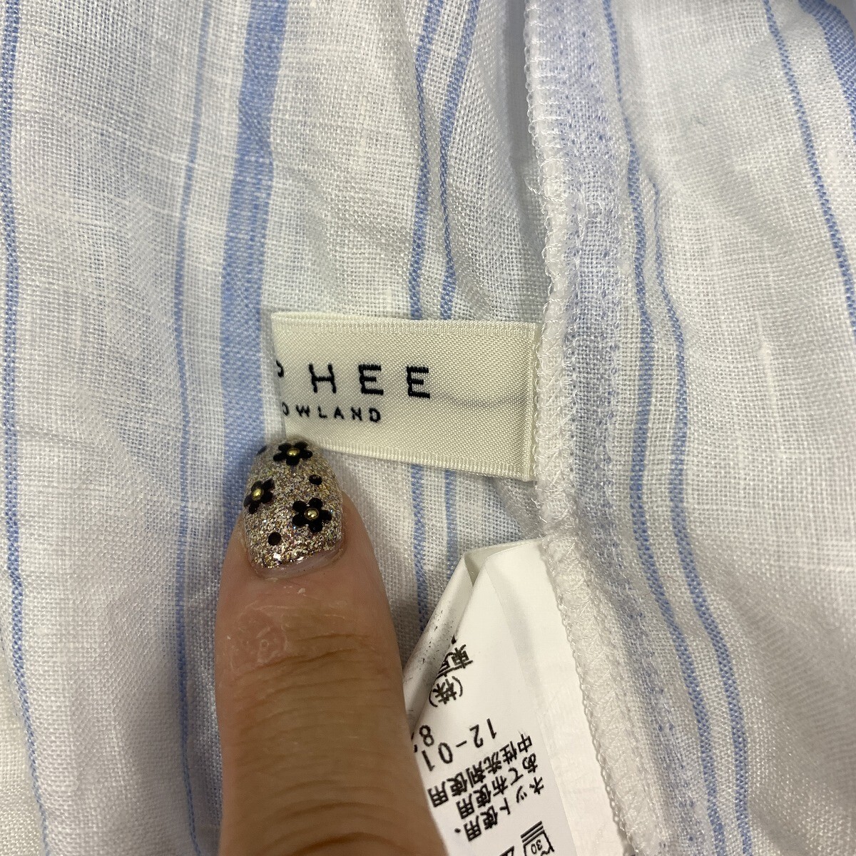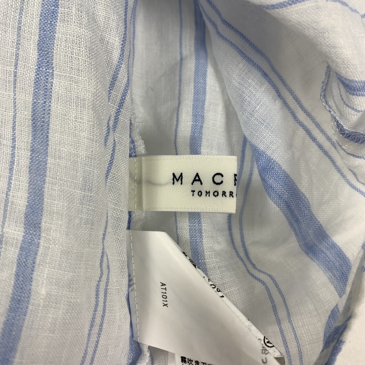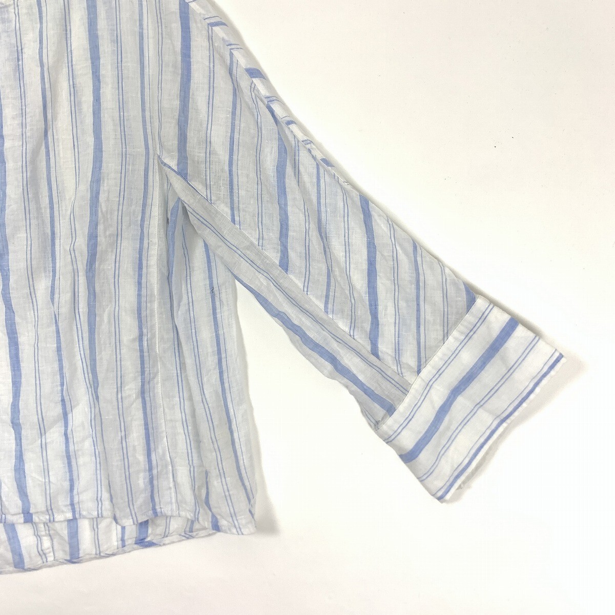 MACPHEE マカフィー リネン 麻100% 長袖ストライプ ブラウス ブルー ホワイト 36 YC963