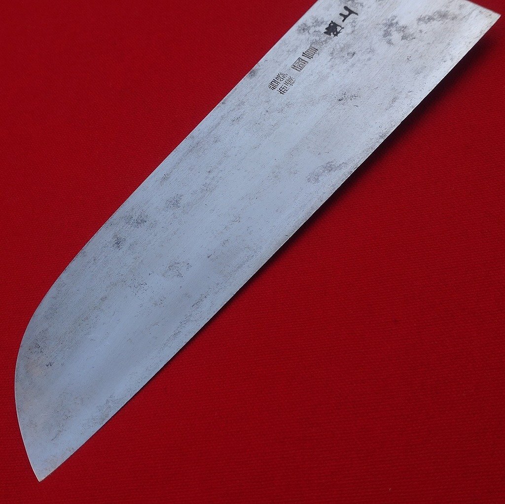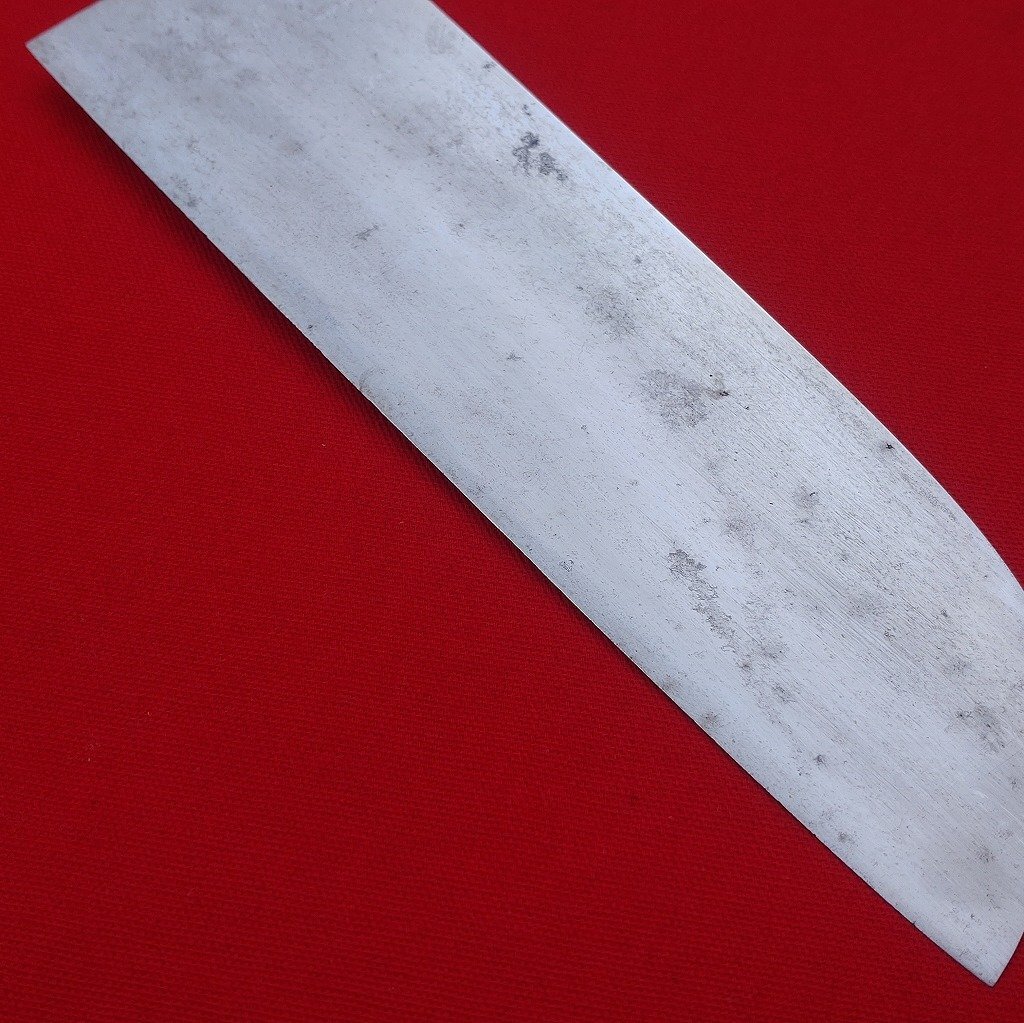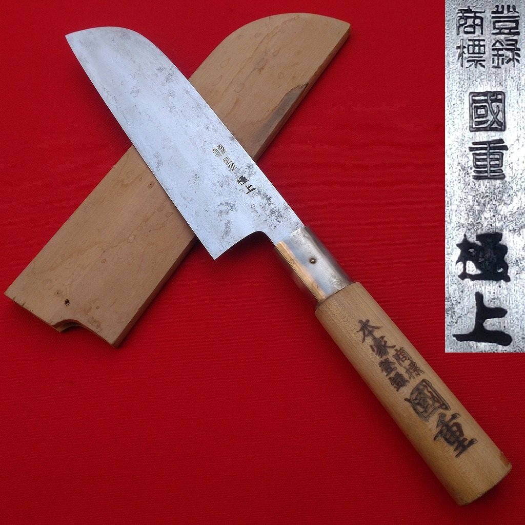 鎌形薄刃包丁 本家 国重 極上 刃長約165㎜ 峰厚最大約3㎜ 両刃 鎌形包丁 薄刃包丁 木製鞘付き 庖丁 刃物 日本製 【2161】