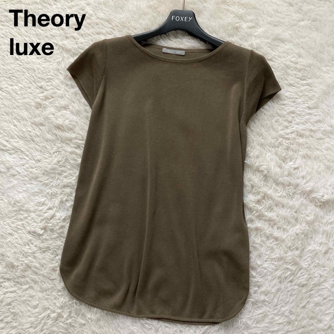 Theory luxe セオリーリュクス サマーニット プルオーバー コットン混 フレンチスリーブ ラウンドヘム 手洗い可能