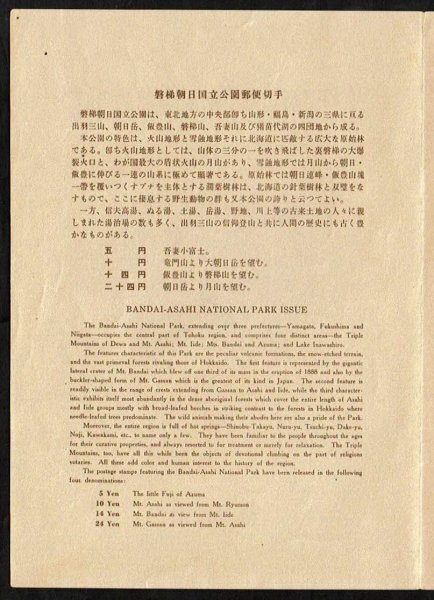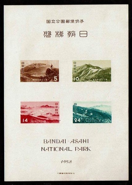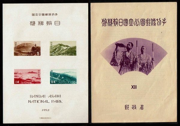 M655■1952年 第1次国立公園切手 磐梯朝日 小型シート(タトウ付き)■未使用・良好