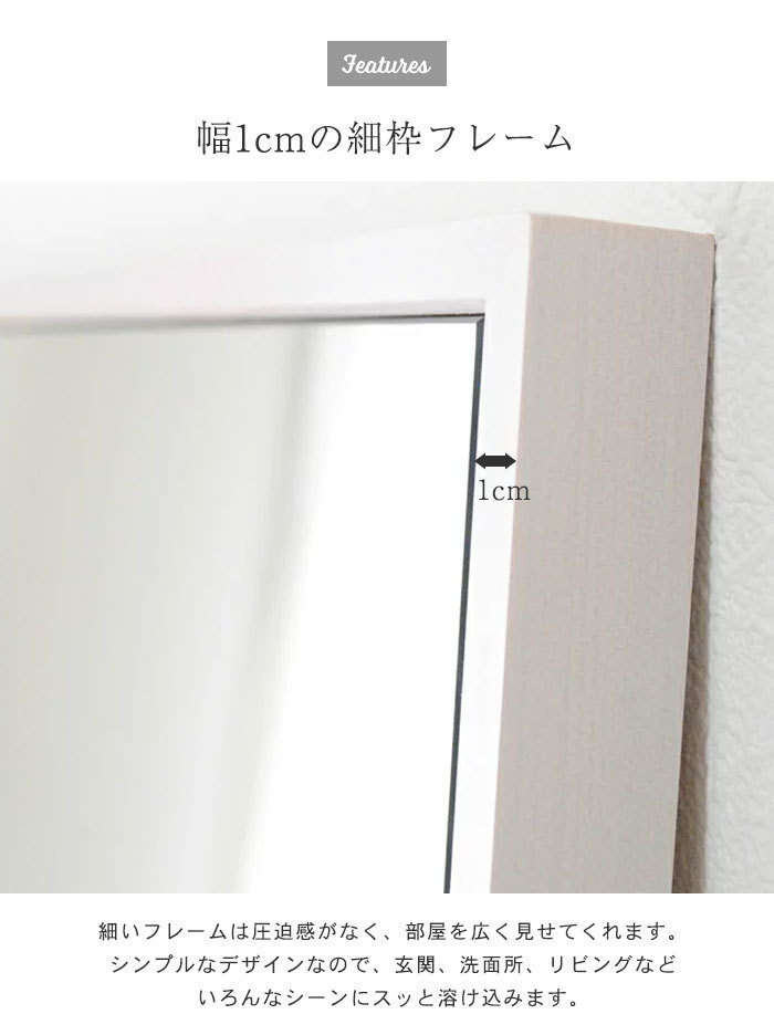 | 商品名 | 鏡 壁掛け 全身 ミラー 姿見 ウォールミラー 木製 フレーム 幅42 高さ42 大型 玄関 天然木 細枠 飛散防止 日本製 ホワイト M5-MGKNG00070WH |