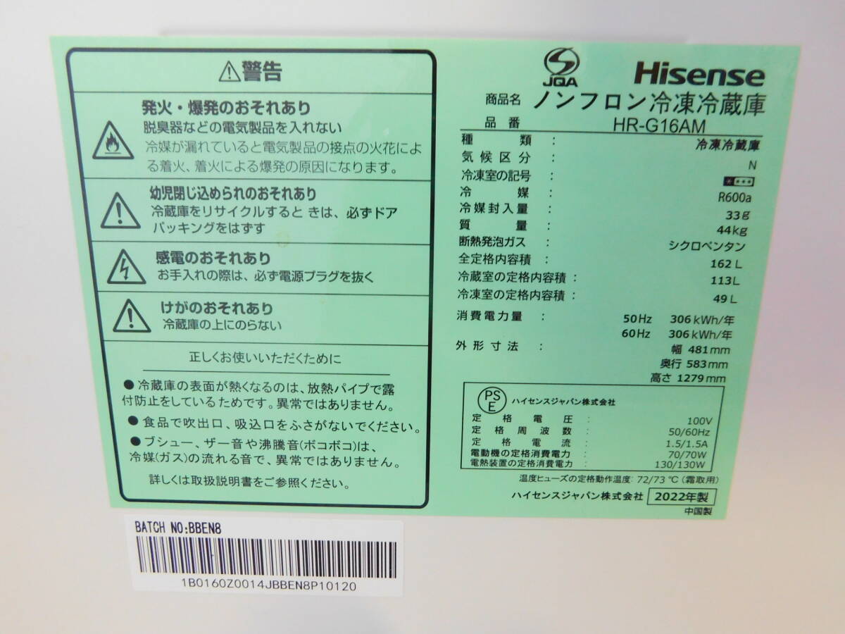 | m934 ♪美品♪2022年製♪ Hisense ハイセンス 2ドア ノンフロン冷凍冷蔵庫 HR-G16AM ミラードア ミラーブラック 162L ドアアラーム付き | |