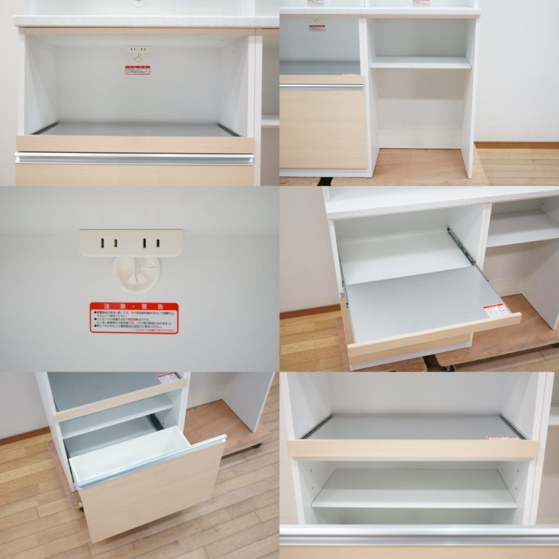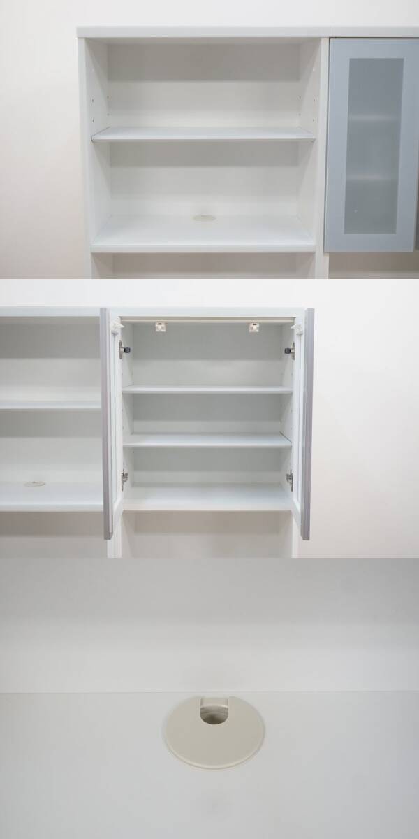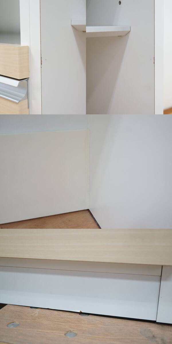 ■東ハ:【KEYUCA/ケユカ】フローラⅣ キッチンボード 幅約130.3㎝ 高さ約211.7㎝ 組み合わせ式 キッチン収納家具 レンジ台 食器棚 高橋木工所■ 家具・キッチン・服飾雑貨などのオリジナルデザインの商品で人気のライフスタイルショップ KEYUCA/ケユカ「 フローラⅣ キッチンボード 」になります。 明るく清潔感のあるホワイトカラーにナチュラルカラーを組み合わせた シンプルで&ナチュラルなインテリアにおススメのキッチン収納家具です。 ◆上台オープンスペース ・左右天井部:蒸気や熱に強いモイス加工付き ・正面向かって左:(約)高さ49.5 × 幅66.0 ×奥行43.0 ㎝ ・正面向かって右:(約)高さ49.5 × 幅56.0 ×奥行43.0 ㎝ 【サイズ】 全体 (約) 高さ211.7 × 幅130.3 ×奥行45.2 cm 中古のお品となります。 付属品は写真にあるものが全てです。 使用に伴うシミヨゴレ、キズ、表面材のケズレ・ハガレが複数、 レール金具の一部にサビがございます。 商品画像をよくご確認の上、ご参加ください。 [管理No.25072983XH] |