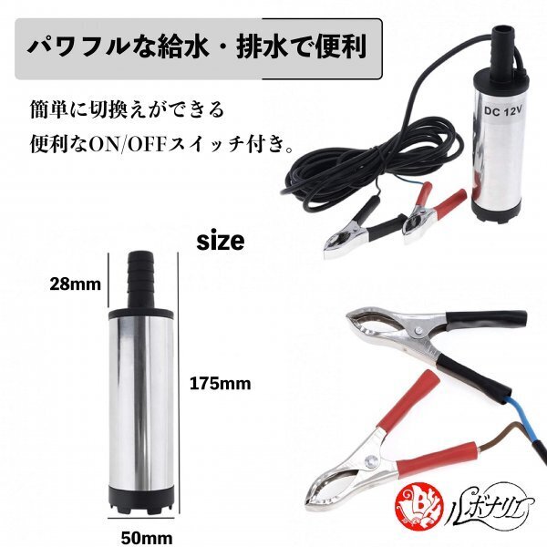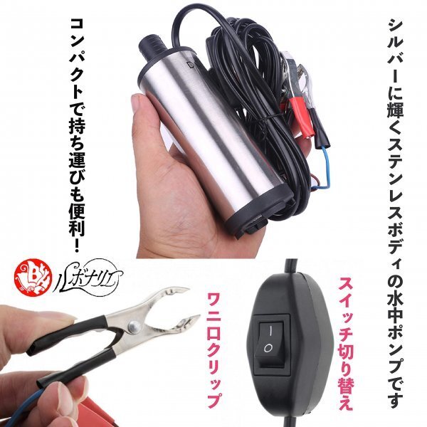 ルボナリエ 水中ポンプ 毎分 30L スイッチ式 12V 小型 バッテリークランプ ビルジポンプ 水中ポンプ シルバー 12V AF248