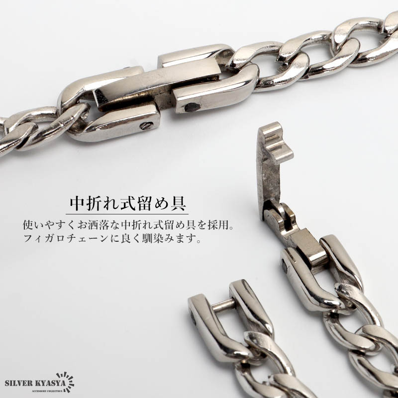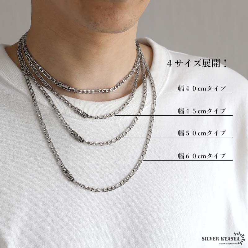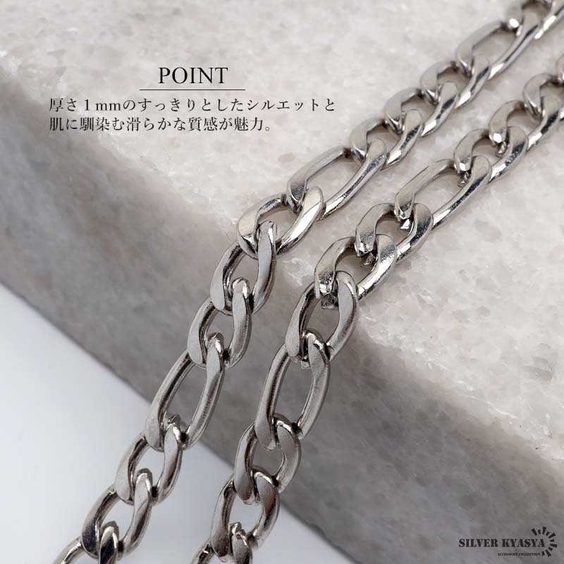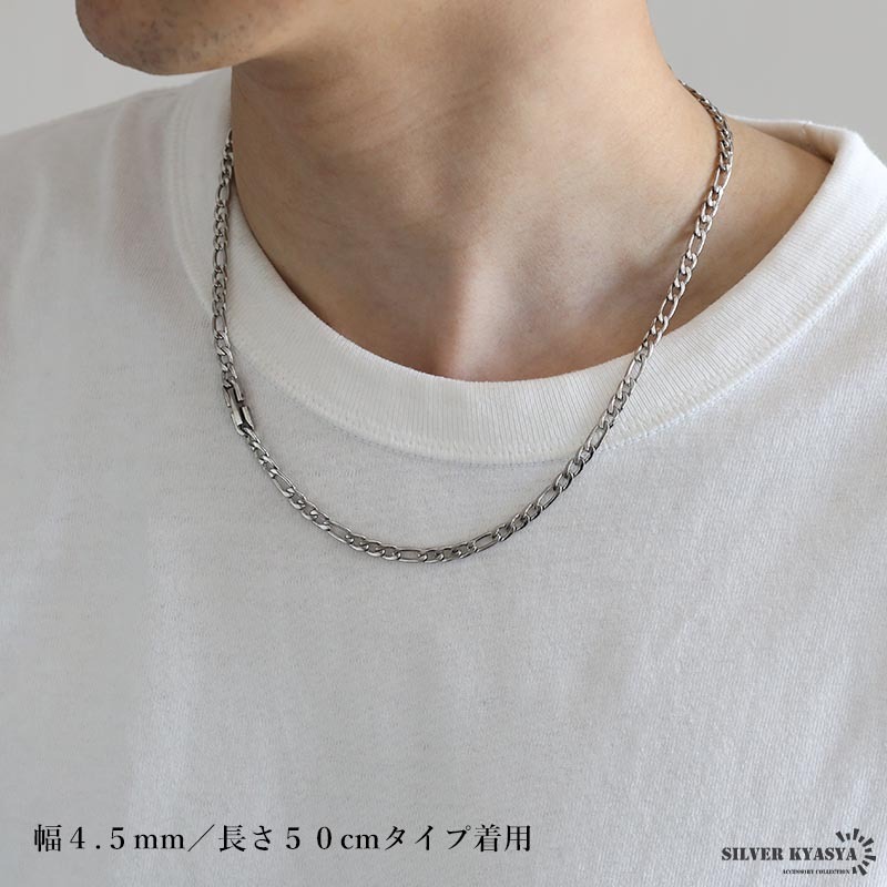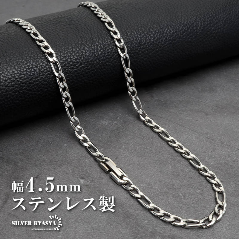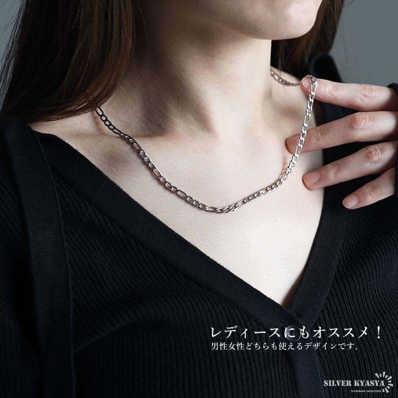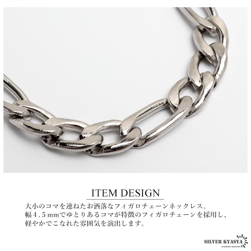 大小のコマを連ねたお洒落なフィガロチェーンネックレス。幅4.5mmでゆとりのあるコマが特徴のフィガロチェーンを採用し、軽やかでこなれた雰囲気を演出します。