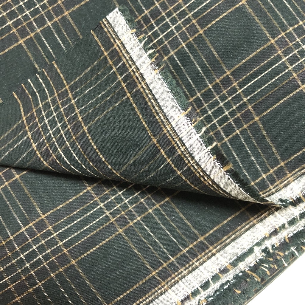 ◆ランク(商品の状態)◆S現品限り。 かなり固くてハリのある生地。グリーンのチェックです。制服によくつかわれるようなチェック。