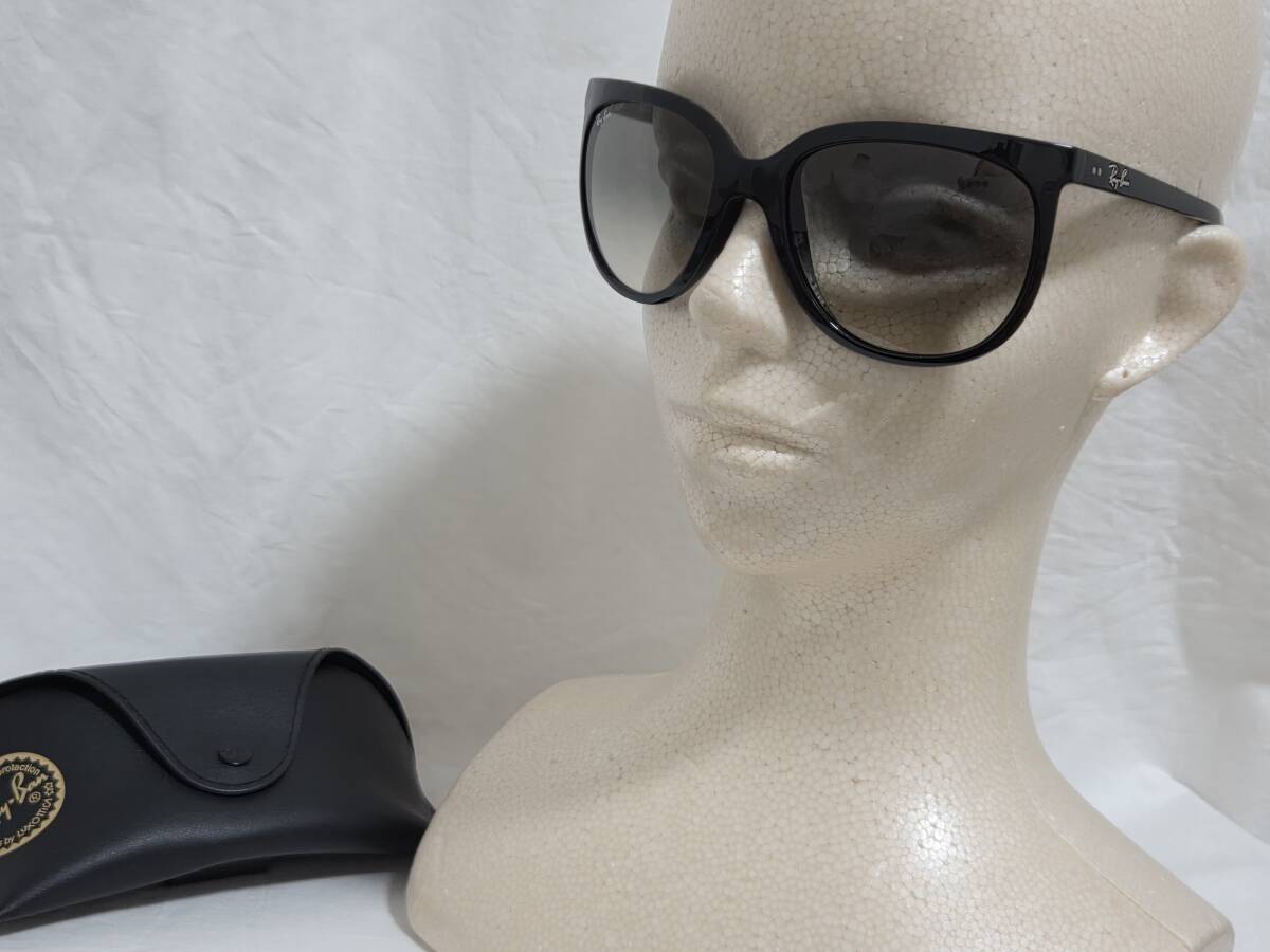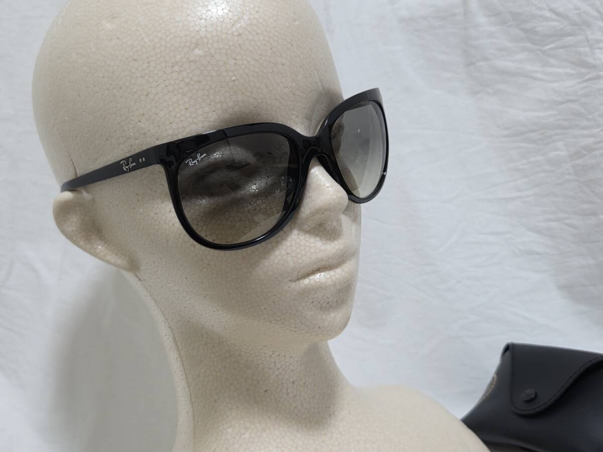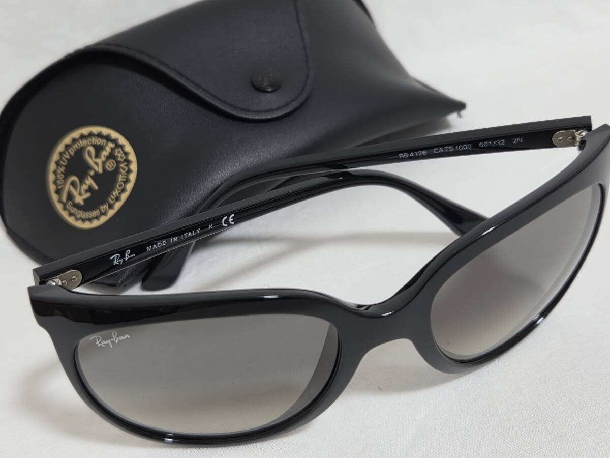 正規未 レア Ray-Banレイバン ウェリントン ロゴ キャットアイ サングラス 黒 フォックス型 ビッグレンズフルフレーム アイウェア 付属有