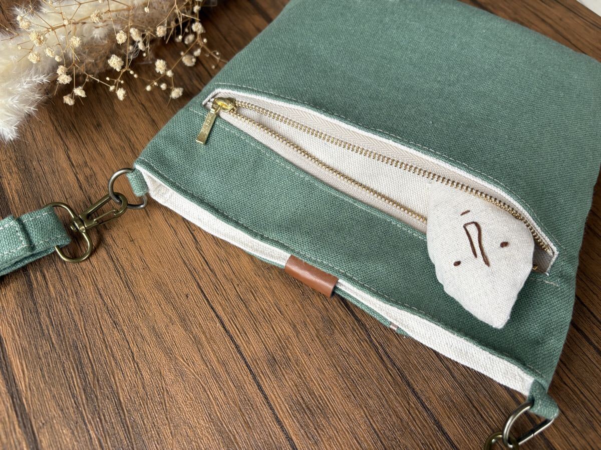 裏側はファスナーポケットもついていますのでハンカチ、リップなど出し入れ簡単で便利です。