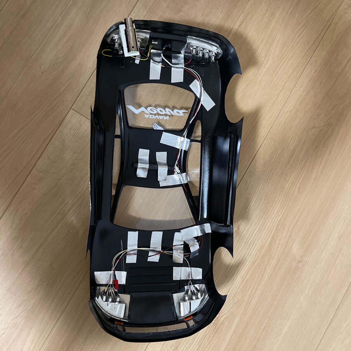マフラー、リアウイング、サイドミラー、自作ライトシステム付き 点滅パターン選べます