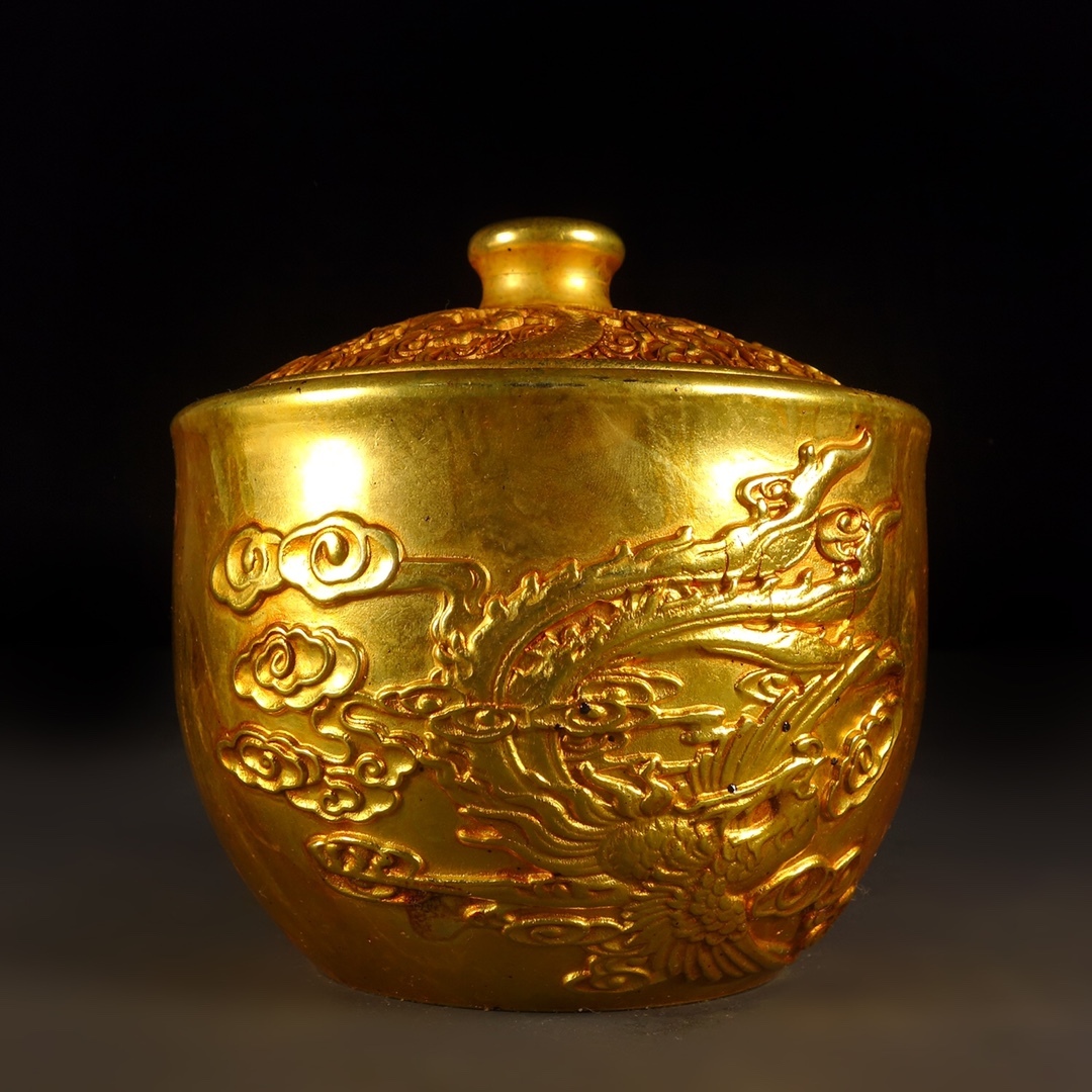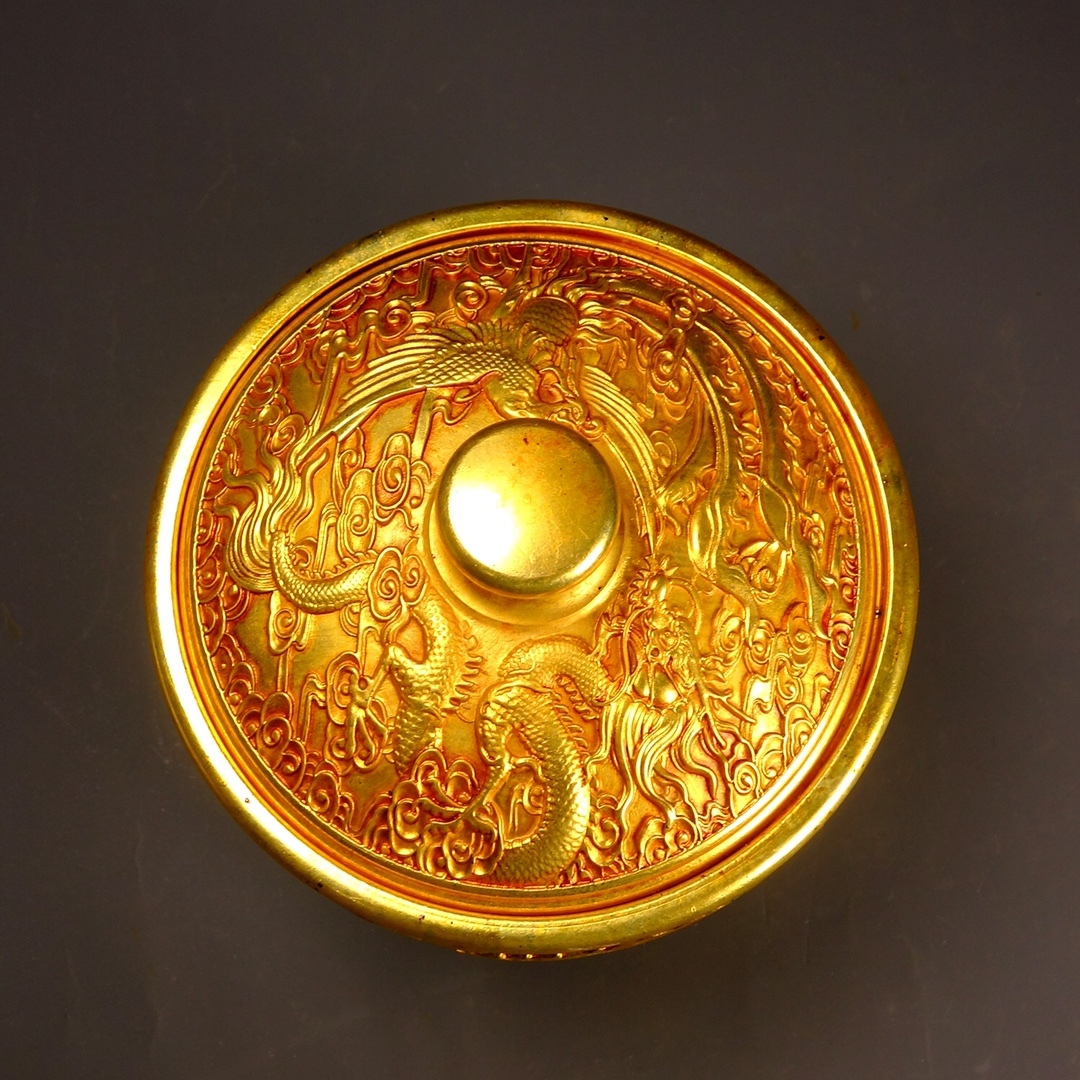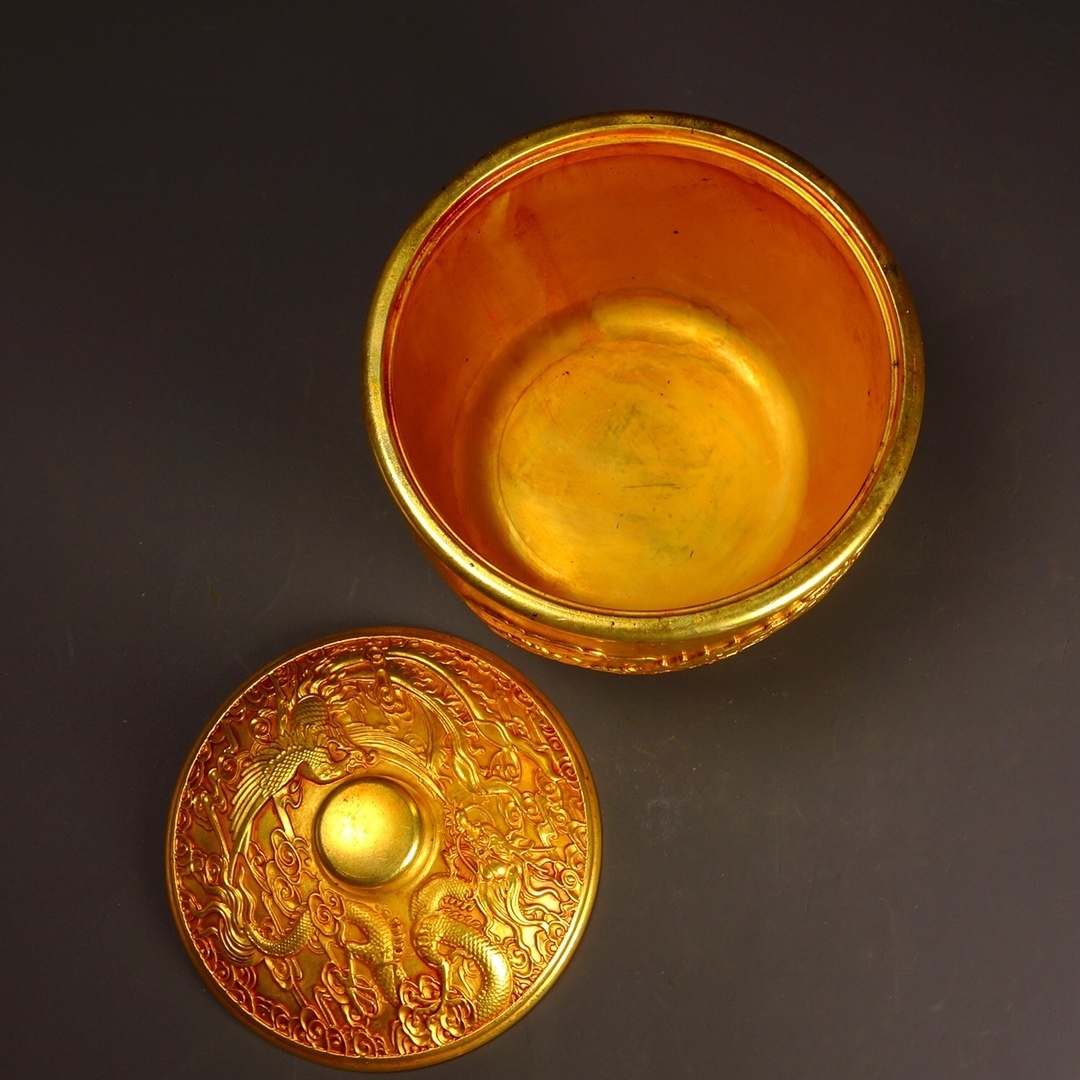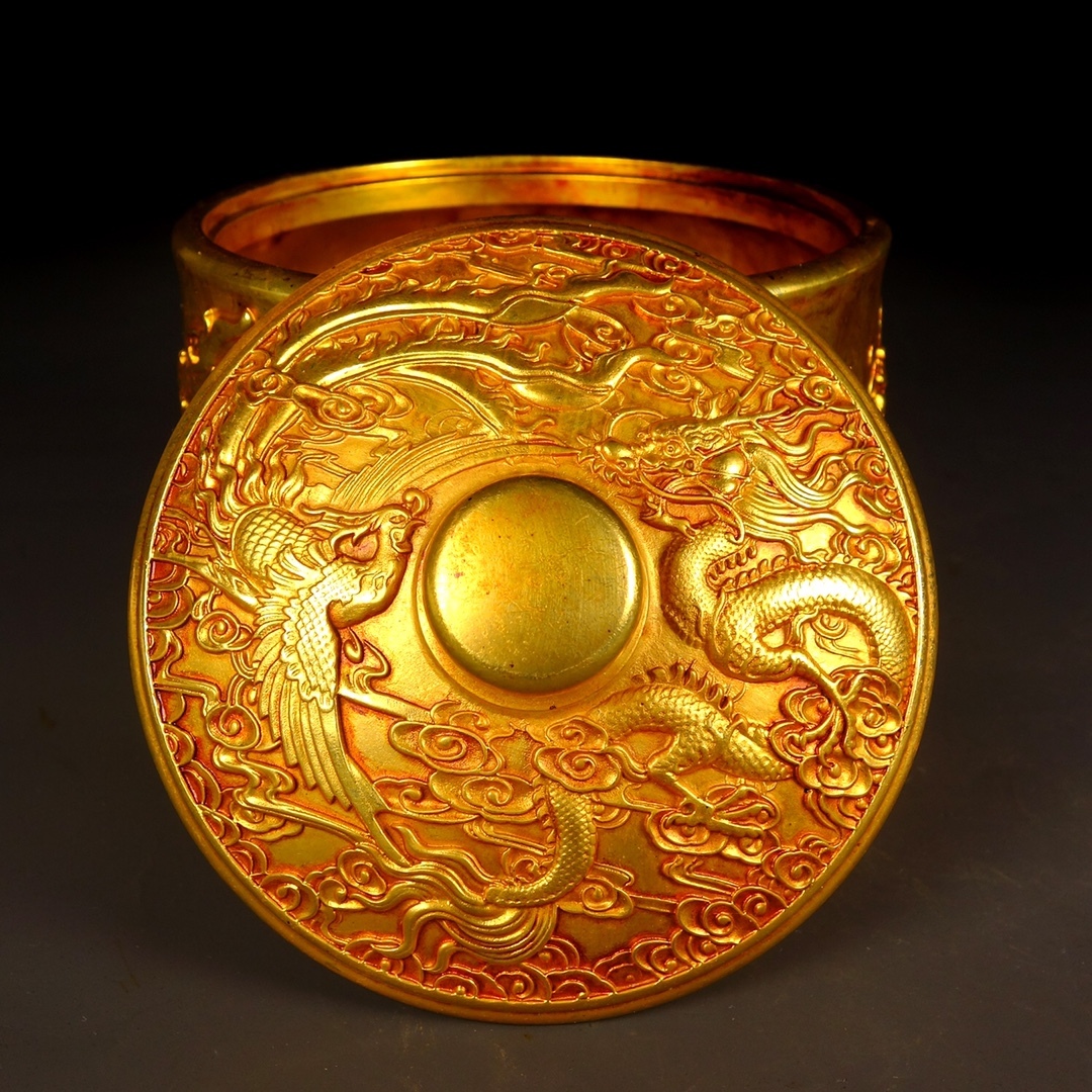 旧 清代 銅金 龍鳳缶 古家具 極細工 中国古美術 古賞物 古置物 唐物 S78