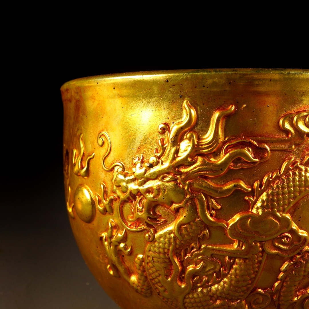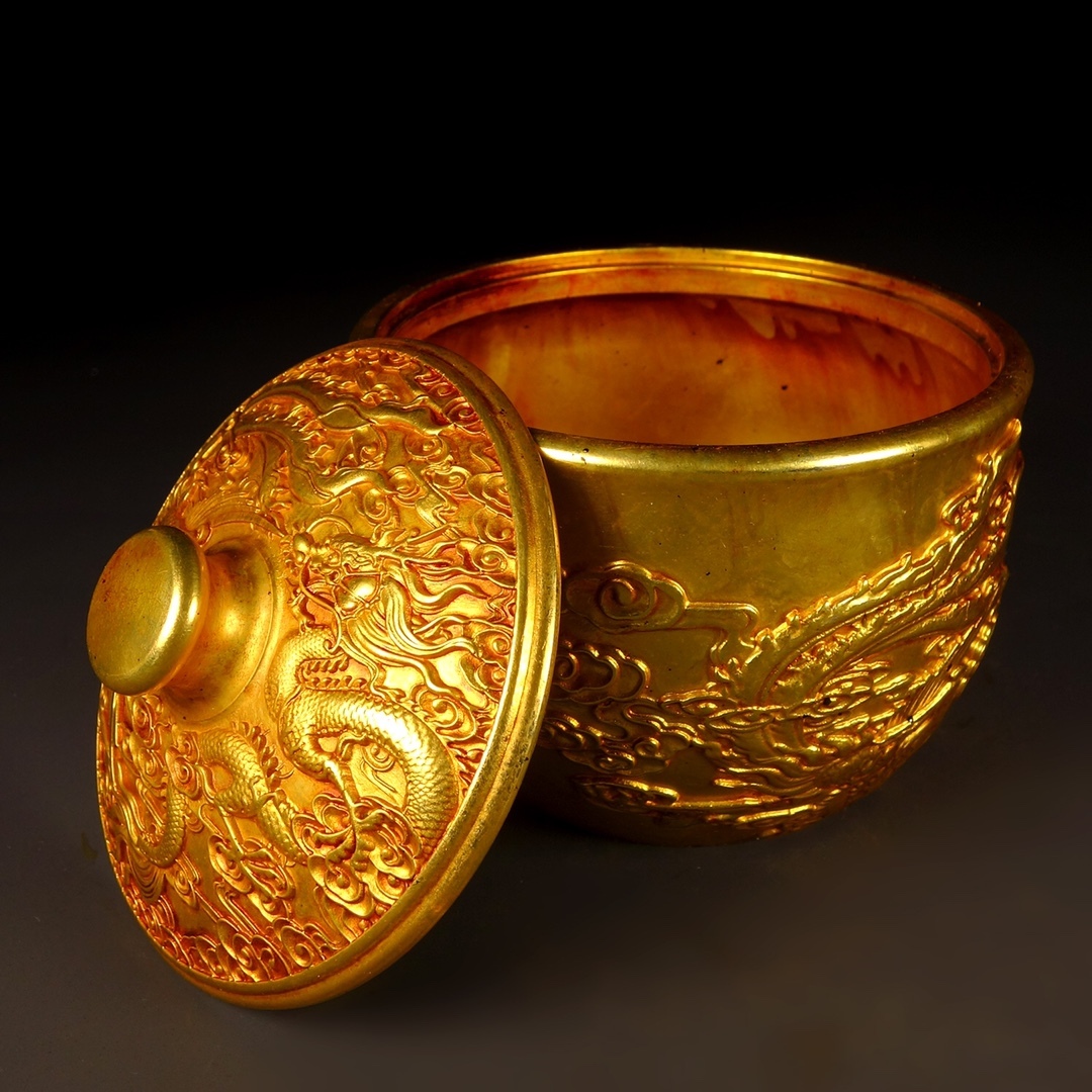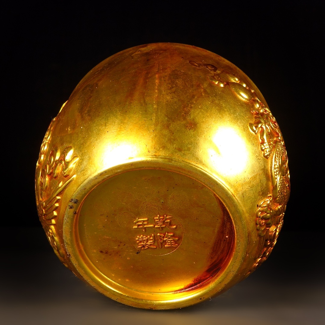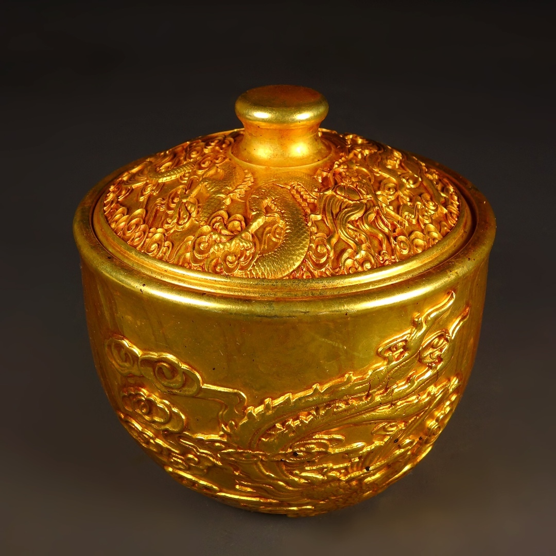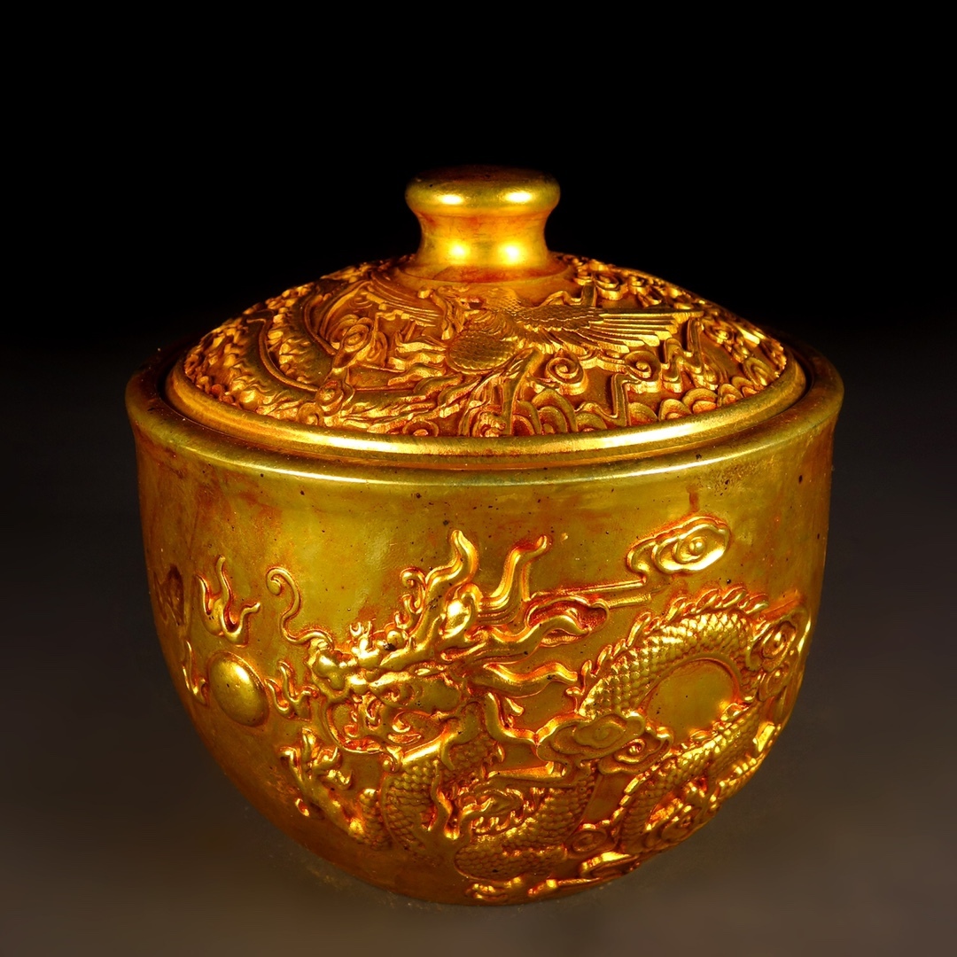 旧 清代 銅金 龍鳳缶 古家具 極細工 中国古美術 古賞物 古置物 唐物 S78