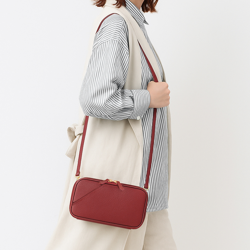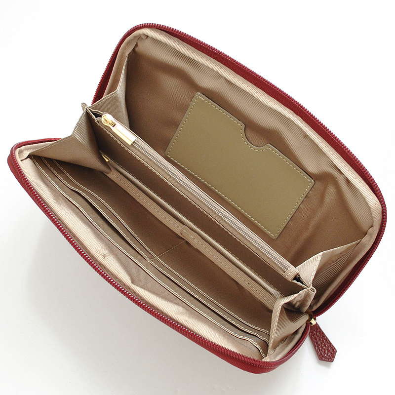 | 規格 | 【カラー】:ワイン 【仕様】:外面/ポケット×1 内面/札入れ×2、ファスナー小銭入れ×1、カードポケット×5、フリーポケット×1 【付属】::ショルダー紐(長さ調整可能)、不織布(箱は無しです) |
