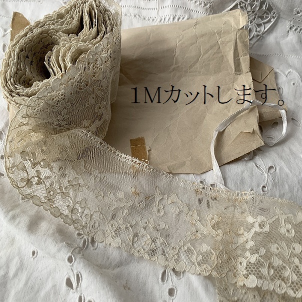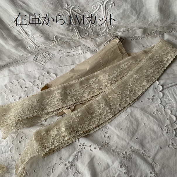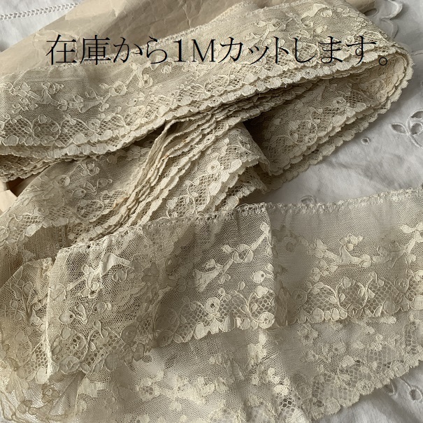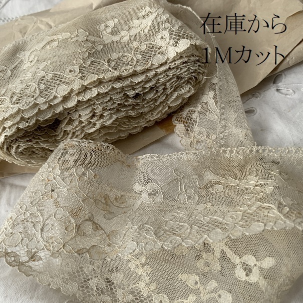 フランスアンティーク  ニードルアラソンレース 1Mカット エクリュカラー お花 刺繍 リ メイク材料 Lace