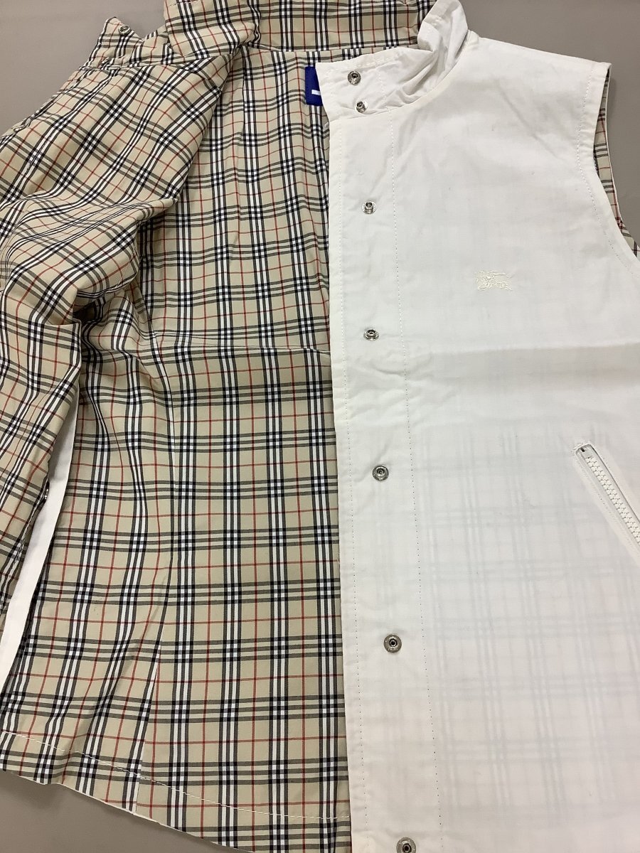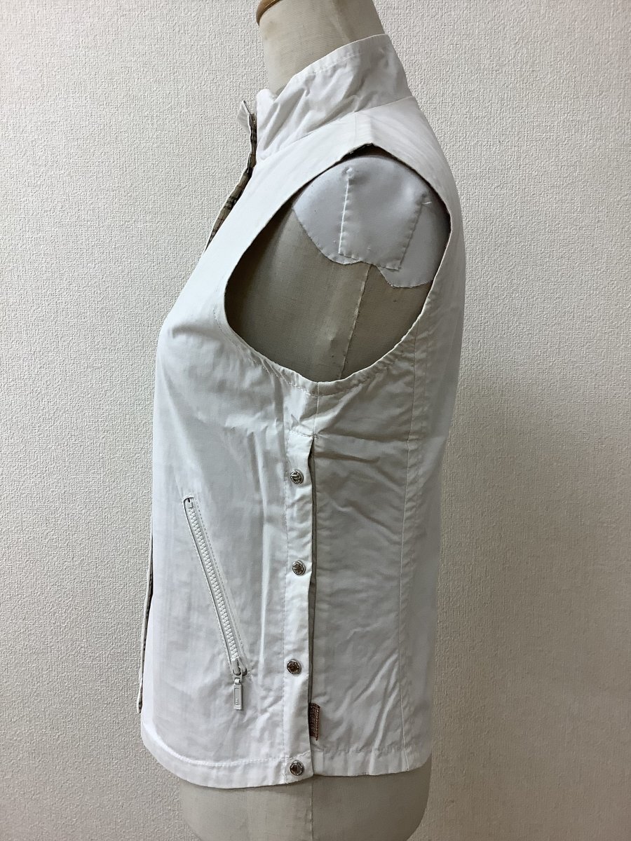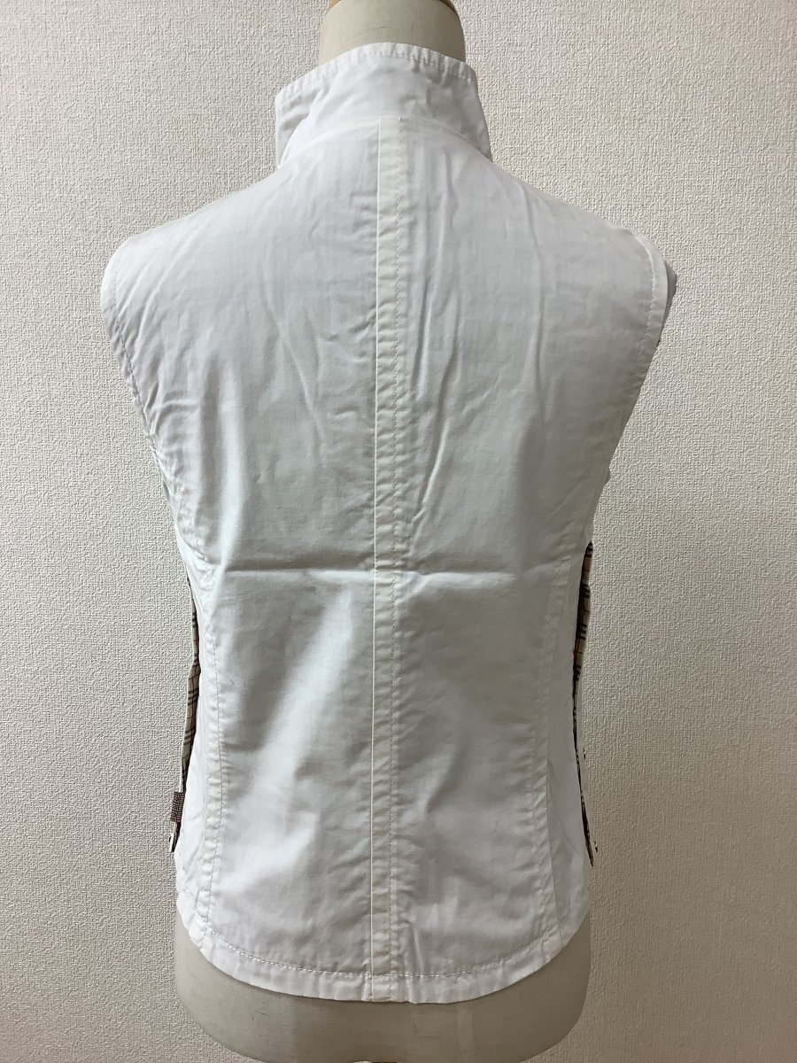 | バーバリー ブルーレーベル (Burberry Blue Label) オフホワイトベスト 裏はベージュチェック 【表示サイズ】 38 【平置き実寸】 脇下身幅 43cmほど 着丈 53cmほど 肩幅 35cmほど 【季節感】春秋向け 【状態その他】 やや傷や汚れあり 背中左下あたりや右肩などに薄く黒っぽい汚れあり 当店管理番号:10^141030 |