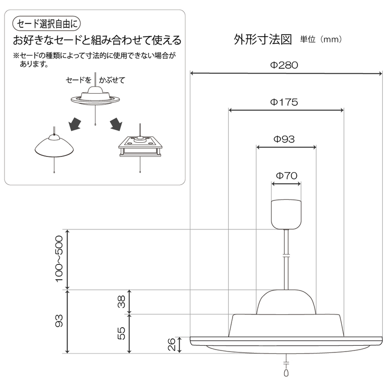 ● お好きなセードと組み合わせて使えるLEDペンダントライト用の光源です