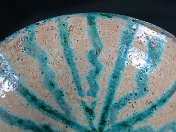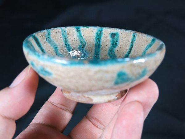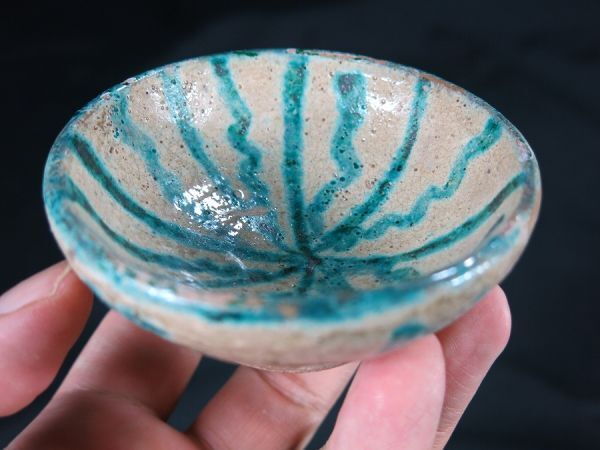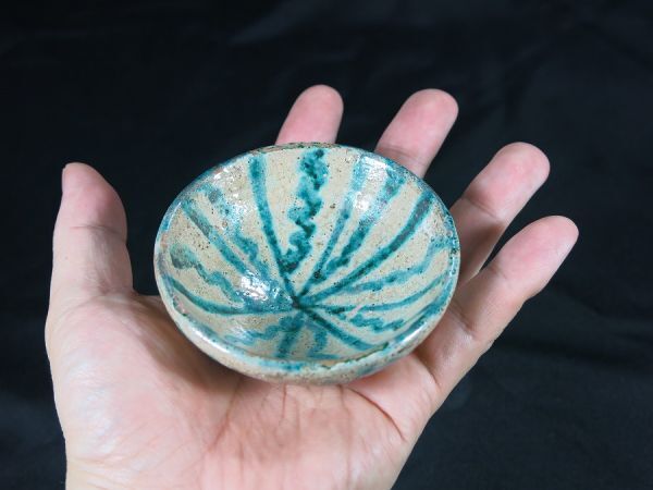 白地単彩放射文小碗① アフガニスタン  遺跡発掘品 陶器 です。     コレクション整理での 出品です。