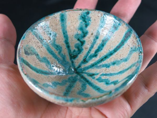 白地単彩放射文小碗① アフガニスタン  遺跡発掘品 陶器