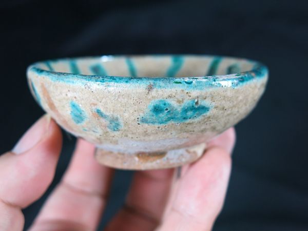 9d 白地単彩放射文小碗① アフガニスタン  遺跡発掘品 陶器/ 副葬品 墳墓 シルクロード 明器 埋蔵文化財 素焼き