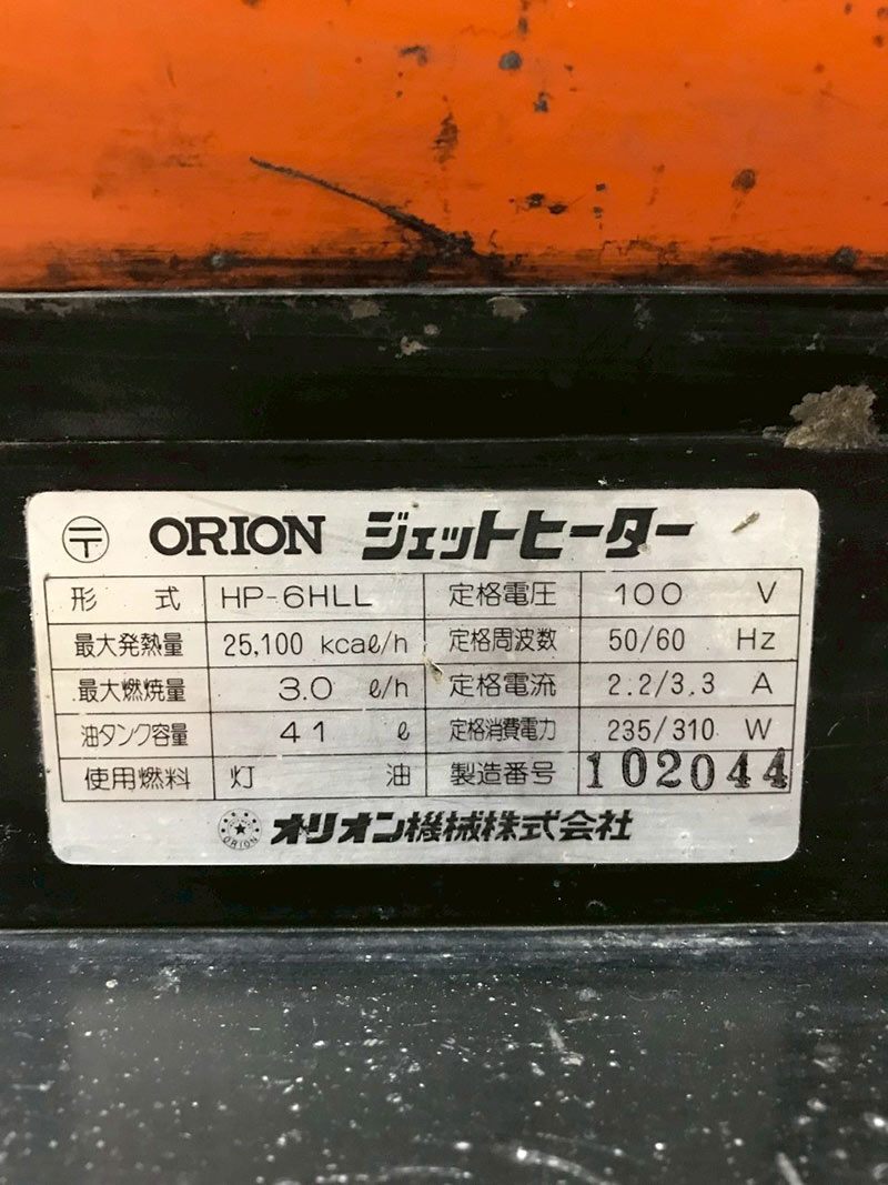 【北見市発】オリオン ORION ジェットヒーター HP-6HLL 赤 暖房機 温風 業務用